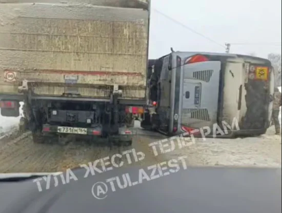 Во вторник днем, 24 февраля, на Веневском шоссе под Тулой перевернулся автобус. По словам очевидцев, ДТП произошло в районе деревни Крюково.