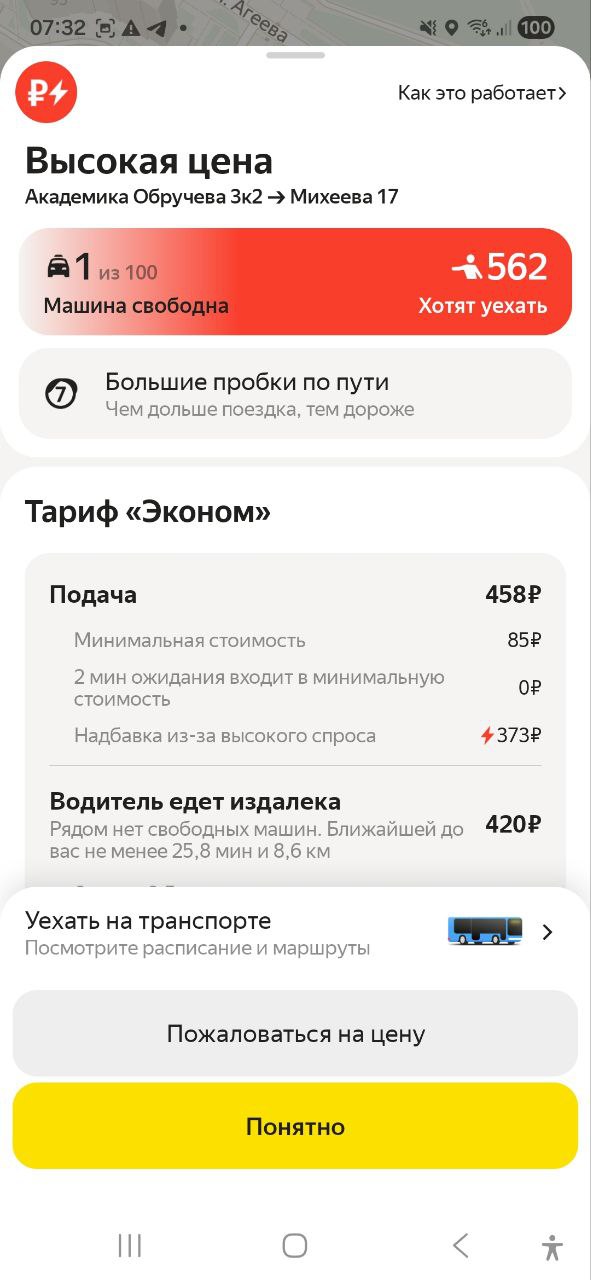 Ситуацию иллюстрируют данные агрегаторов: около семи утра на линию вышло всего около 100 машин эконом-класса, из которых реально доступна была лишь одна. К девяти часам свободных машин не осталось ни в одном тарифе. При этом желающих уехать на работу утром было предостаточно — в пиковое время на одну машину приходилось больше 560 потенциальных клиентов.