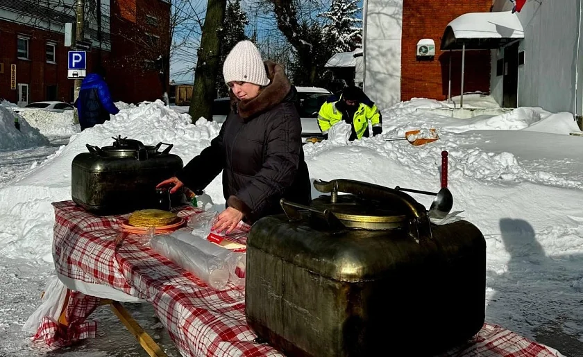 Не обошлось и без традиционного праздничного лакомства — свежеиспеченных блинов и горячего чая. В течение дня также организована дополнительная очистка остановок на региональных дорогах.