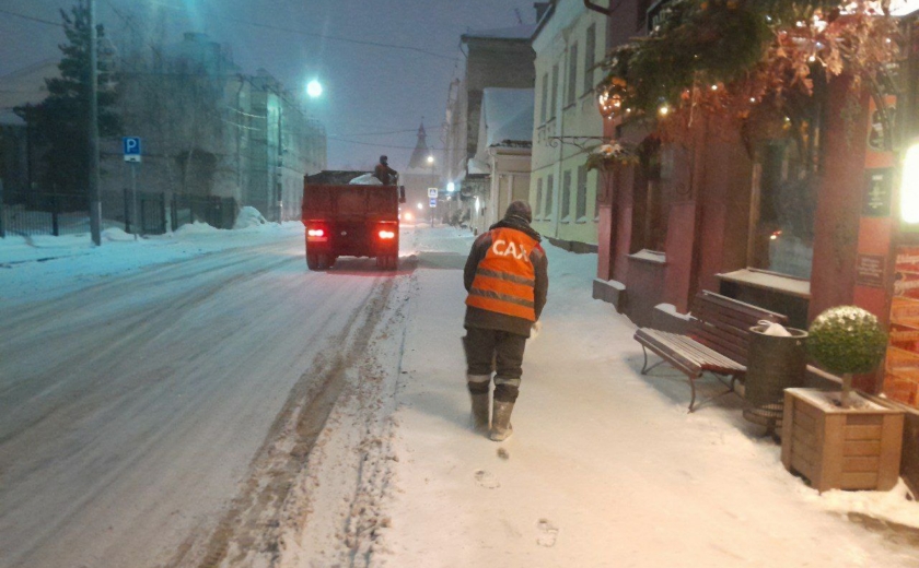 В 02:30 восемь колонн приступили к сгребанию снега и прометанию автодорог. Спуски и подъемы обрабатывались солью. За ночь силами ООО «САХ» вывезено 916 кубометров снега. Работы проводились: