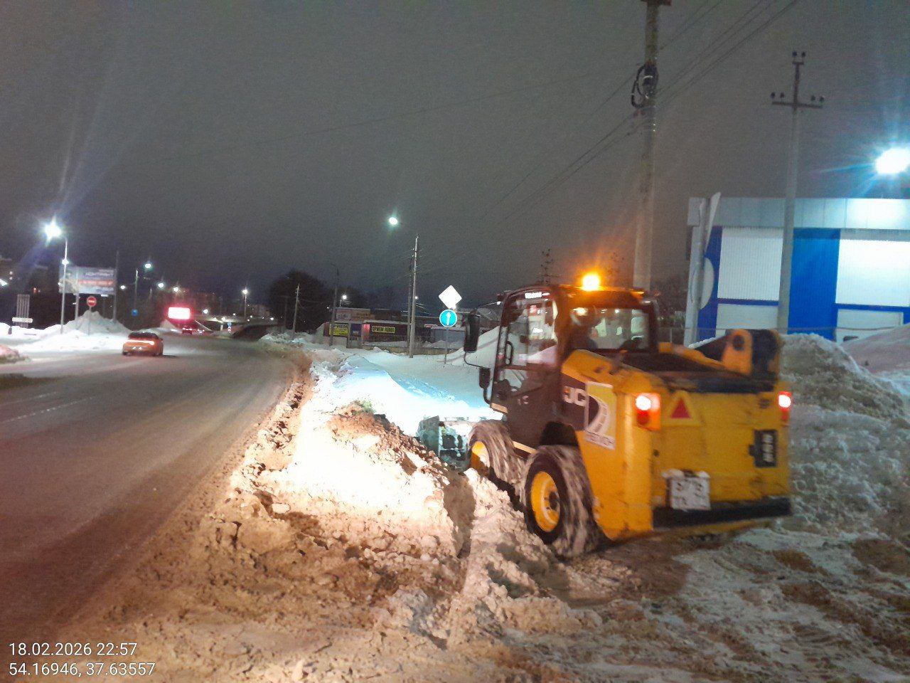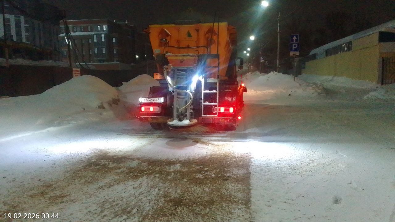 В ночной период в уборке было задействовано 135 единиц техники, в дневной — 147 единиц. Работы ведутся непрерывно, техника работает круглосуточно.