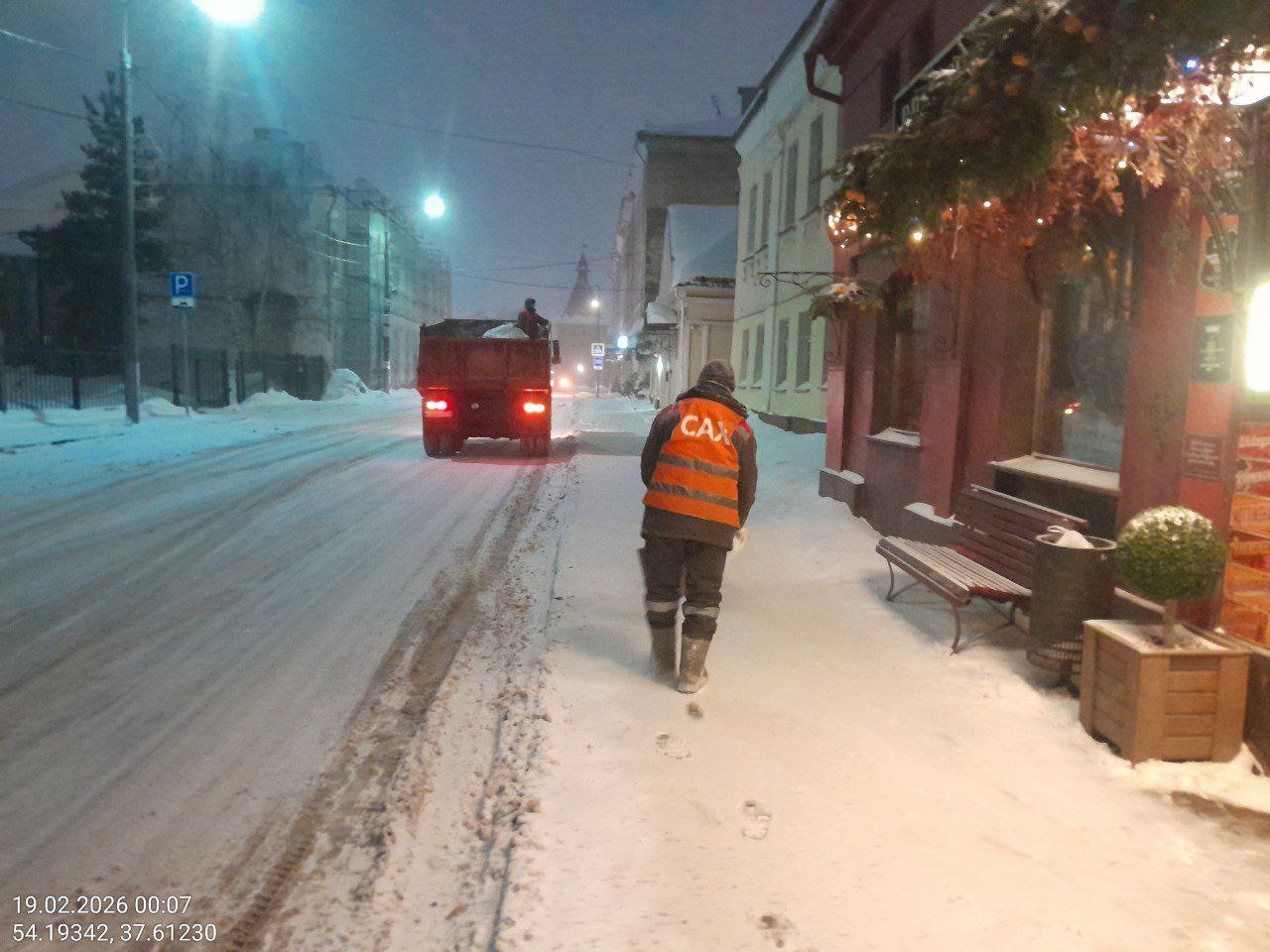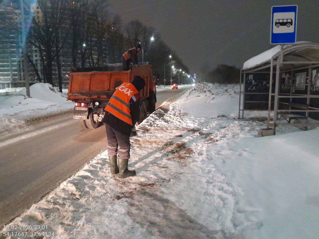 В 02:30 восемь колонн приступили к сгребанию снега и прометанию автодорог. Спуски и подъемы обрабатывались солью. За ночь силами ООО «САХ» вывезено 916 кубометров снега. Работы проводились: