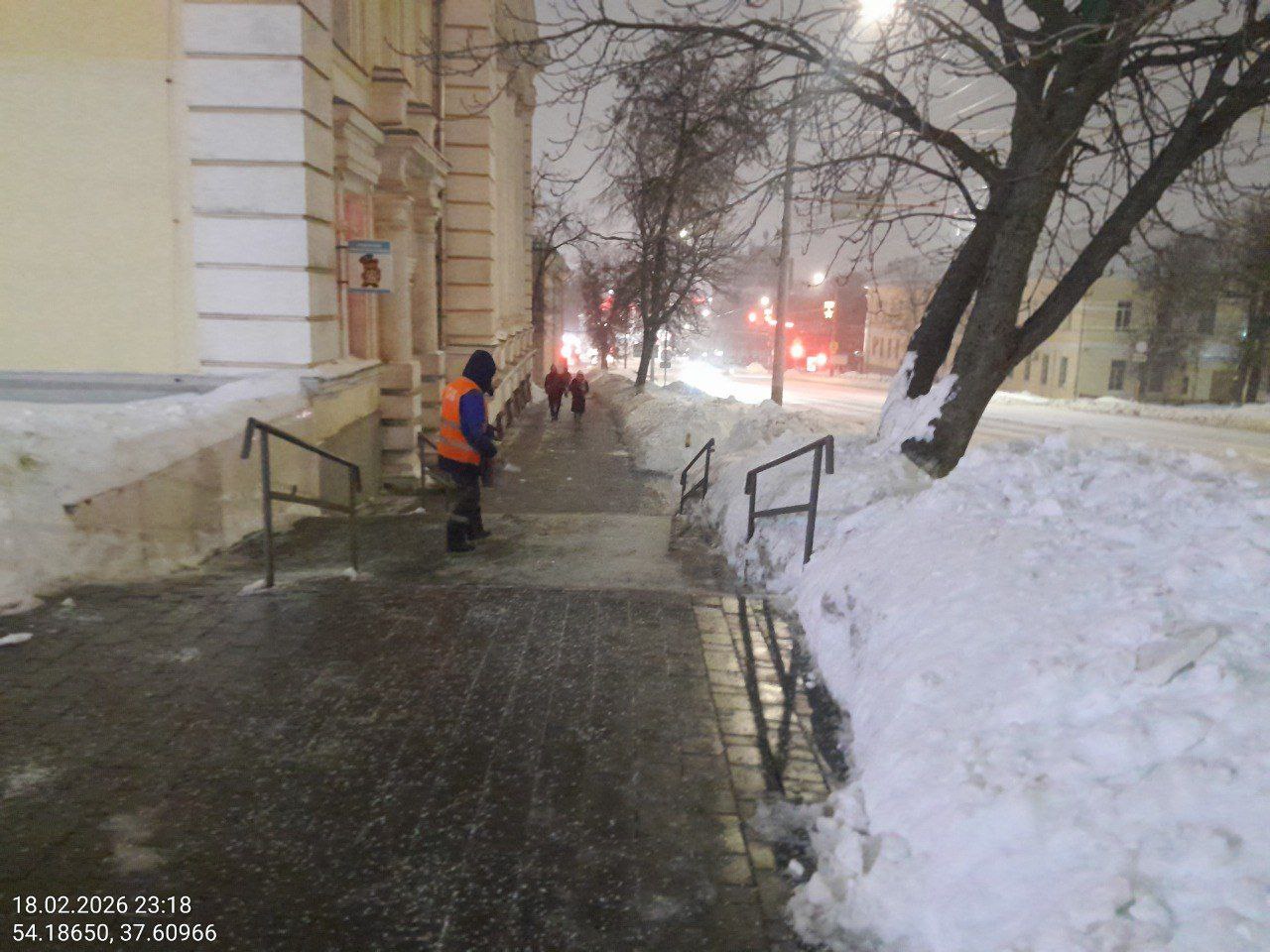 В дневной период работа роторных снегоочистителей запланирована на проспекте Ленина и улице Октябрьской. Кроме того, выполнялись работы как с применением малой механизации, так и вручную — на пешеходных тротуарах, остановках общественного транспорта и пешеходных переходах.