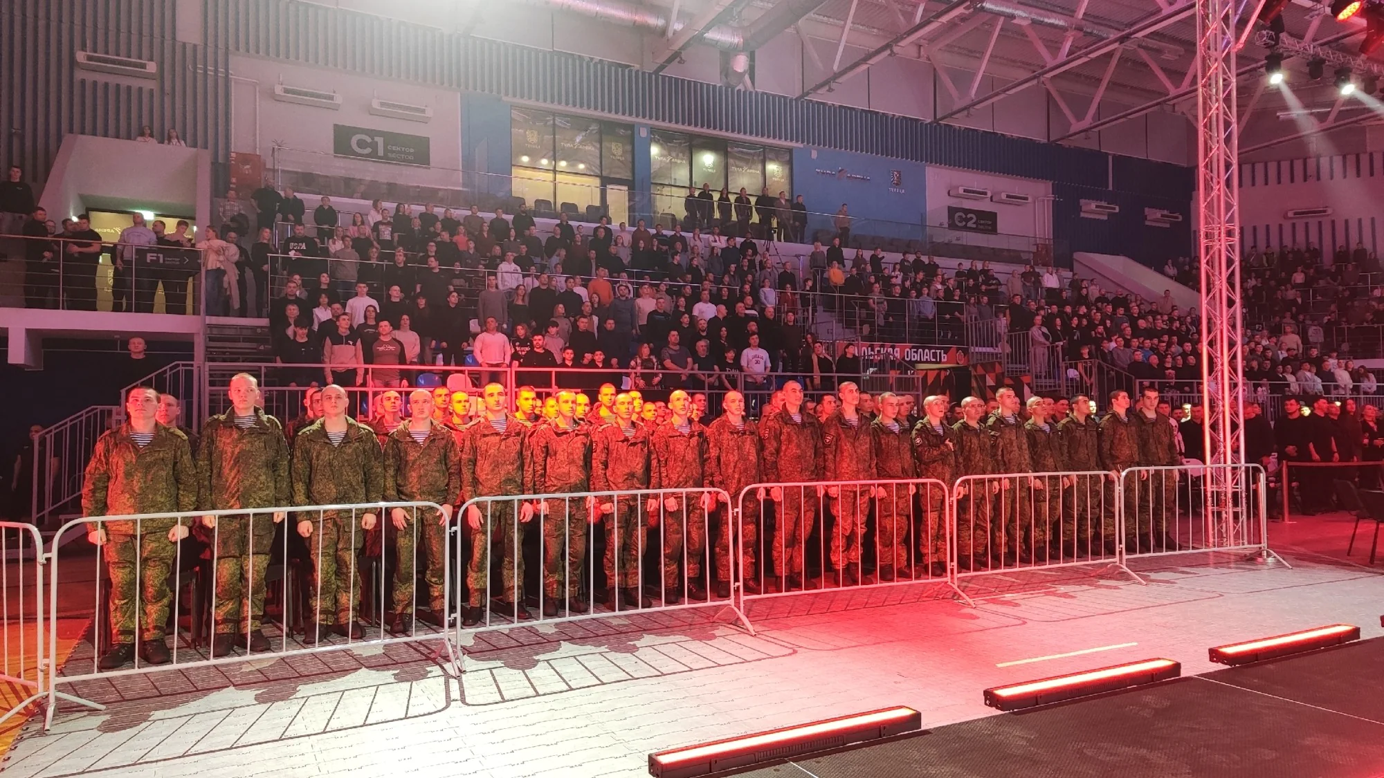 К присутствующим также обратился советник губернатора, депутат Тульской областной Думы, председатель региональной федерации MMA Илья Степанов. Он сообщил, что сегодня на трибунах «Тула-Арены» присутствуют настоящие воины — десантники.