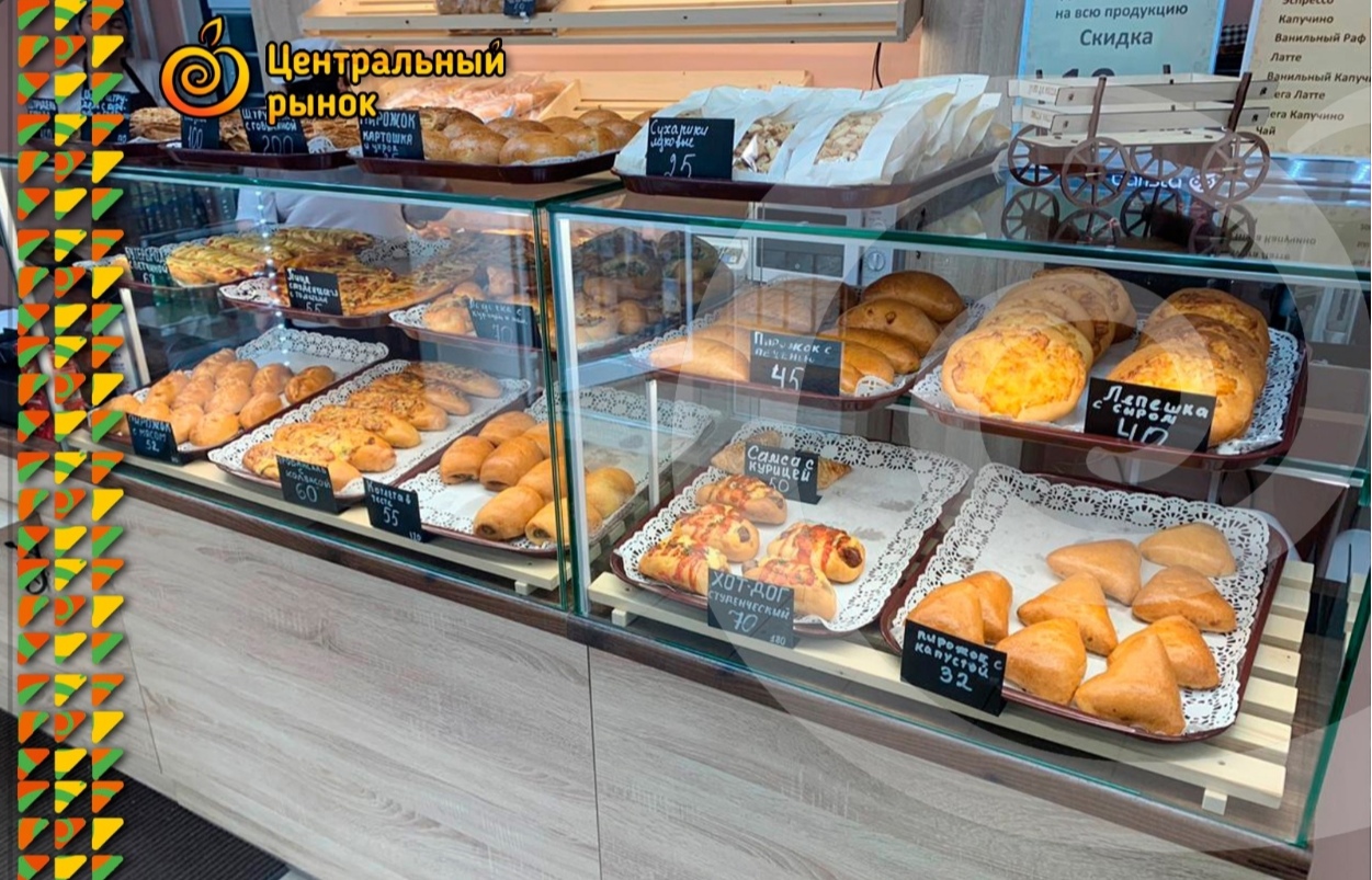 Вход в пекарню находится на территории Новомосковского рынка, с торца рыбного павильона «Океан».