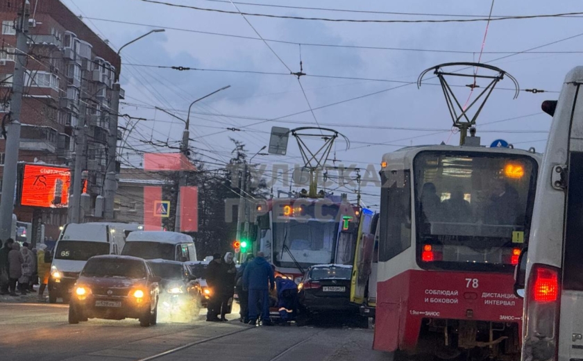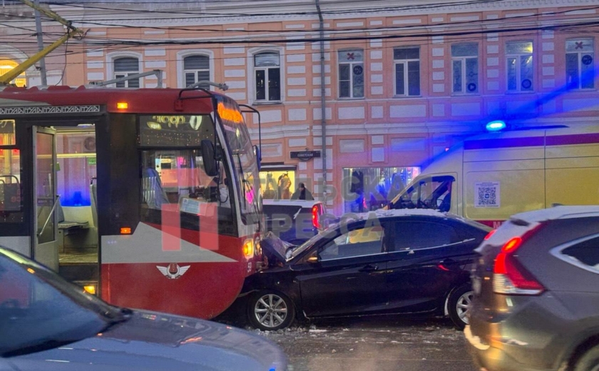 В центре Тулы — серьезная авария аккурат под вечерние пробки. На пересечении улицы Советской и Красноармейского проспекта лоб в лоб столкнулись трамвай и легковой автомобиль Changan.
