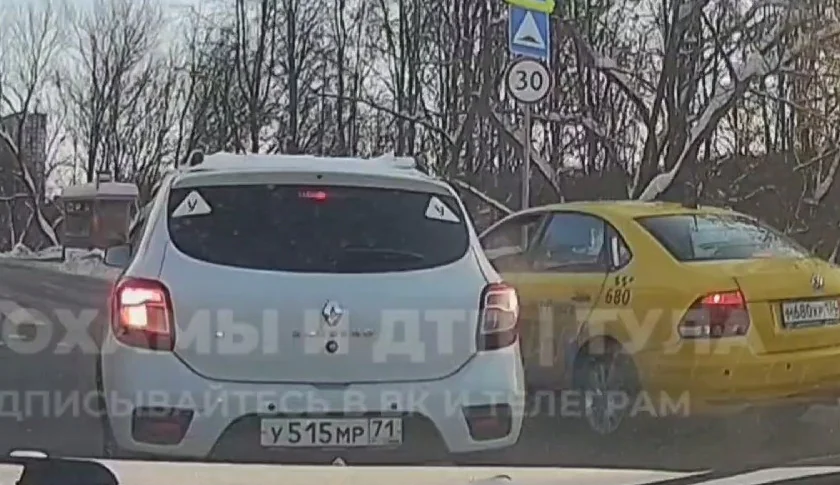 В ТГ-канале «Автохамы и ДТП | Тула» туляк опубликовал видео с регистратора о нарушении ПДД таксистом.
