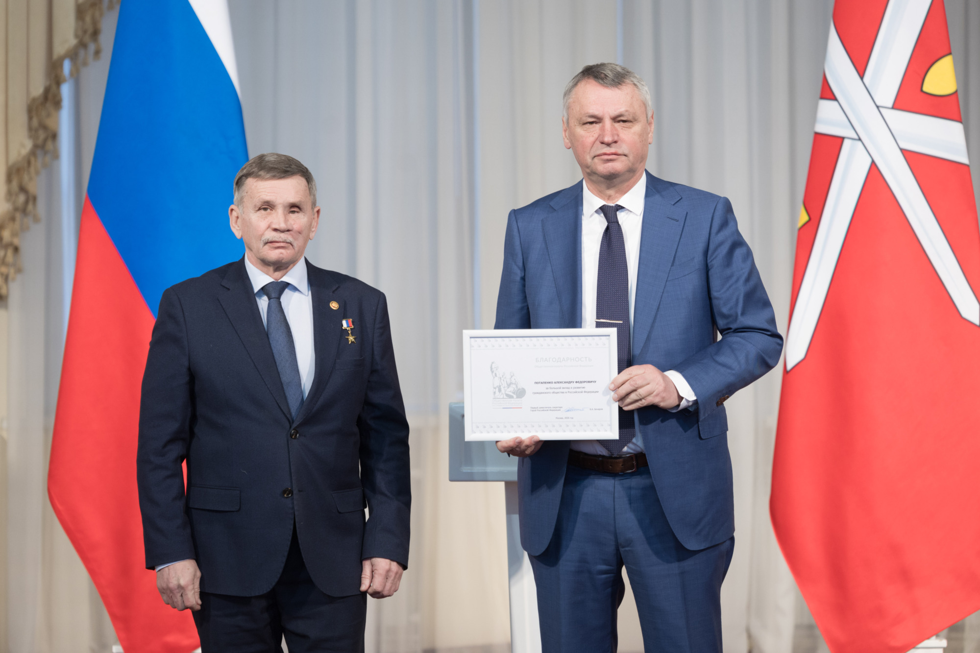 Глава региона поблагодарил всех членов Общественной палаты за работу, проделанную за 15 лет, и пожелал собравшимся крепкого здоровья, неиссякаемой энергии, новых успехов и личного счастья.