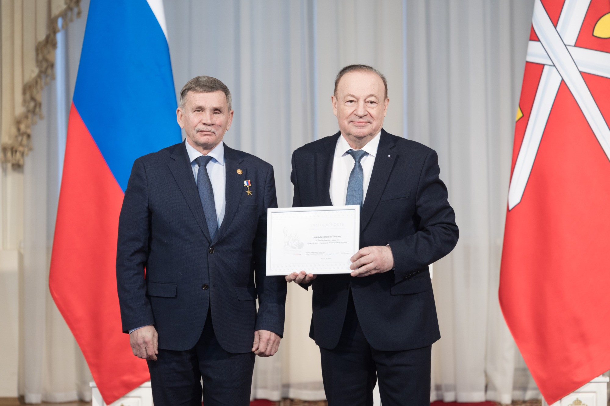 К поздравлениям присоединились первый заместитель секретаря Общественной палаты РФ Вячеслав Бочаров, который отметил активность тульской палаты, и ее председатель Юрий Цкипури. Он заявил, что главная задача палаты — быть центральной площадкой для обсуждения самых важных для жителей региона вопросов, после чего также вручил награды.