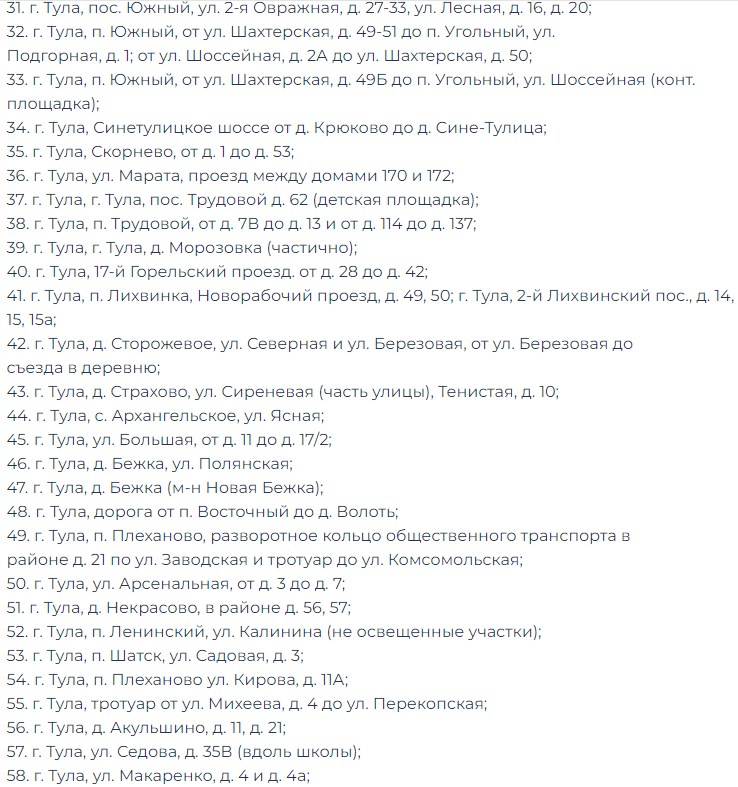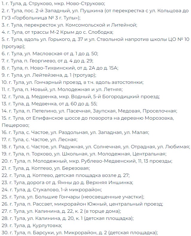 В Туле по просьбам жителей установят освещение на 100 объектах