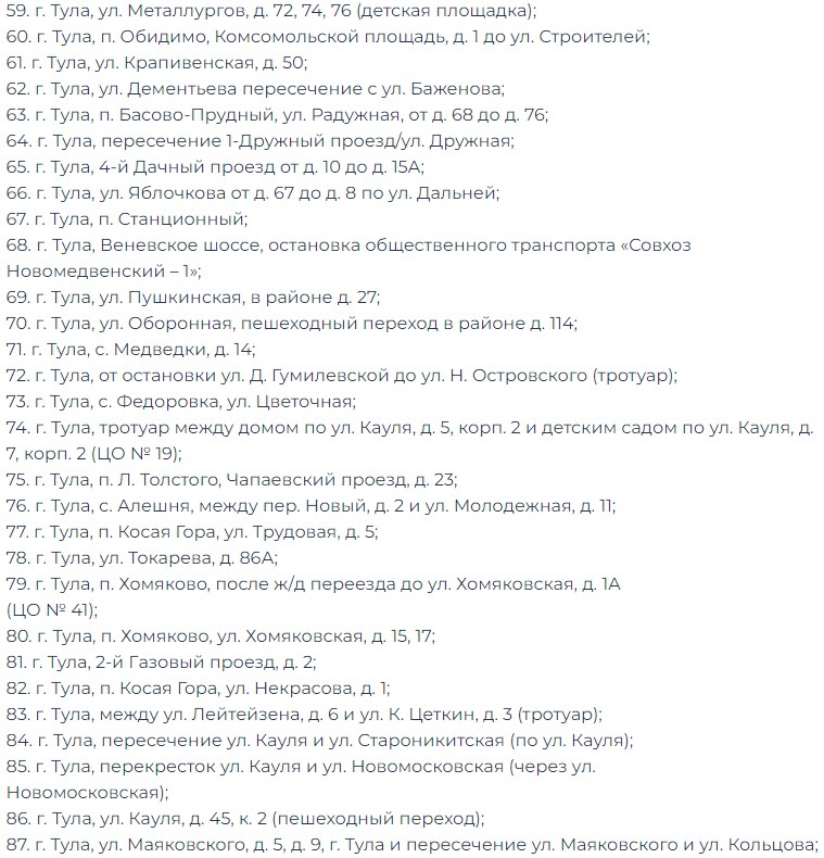 В 2026 году запланировано установить фонари примерно на 100 объектах. Перечень адресов был составлен на основе обращений жителей и по поручению главы администрации города Ильи Беспалова. Ознакомиться со всеми адресами вы можете на фотографиях ниже.