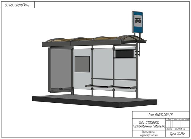В обязательную комплектацию войдут: ветрозащитное стекло с торца (либо рекламный пилон), скамейка из нержавейки, доска для объявлений и информационное табло с расписанием. Также предусмотрено место для дорожного знака «Место остановки» и фриз с названием остановки.