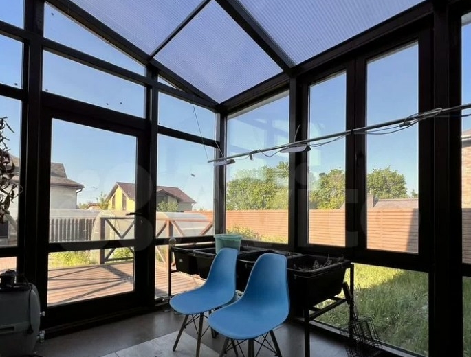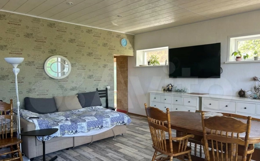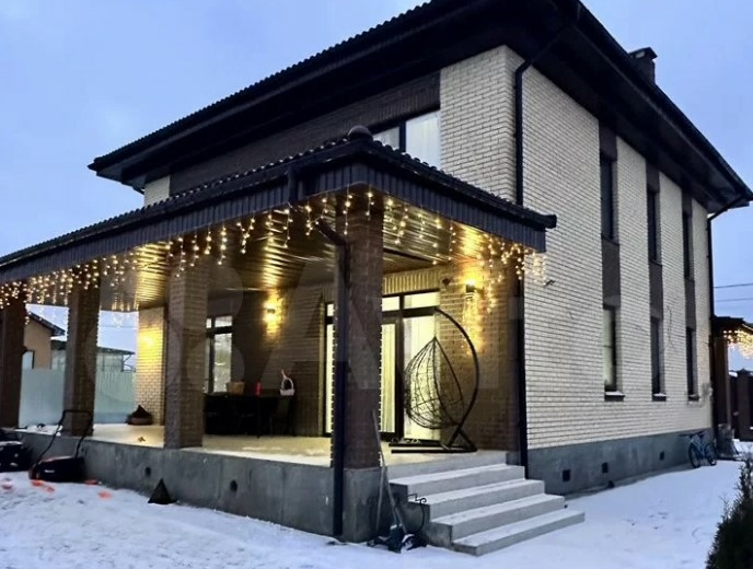 Дом расположен в тульском поселке Рудаково. Он продается за 16,9 млн рублей. Внутри пять комнат, кухня и зимний сад с панорамными окнами. На втором этаже есть балкон.