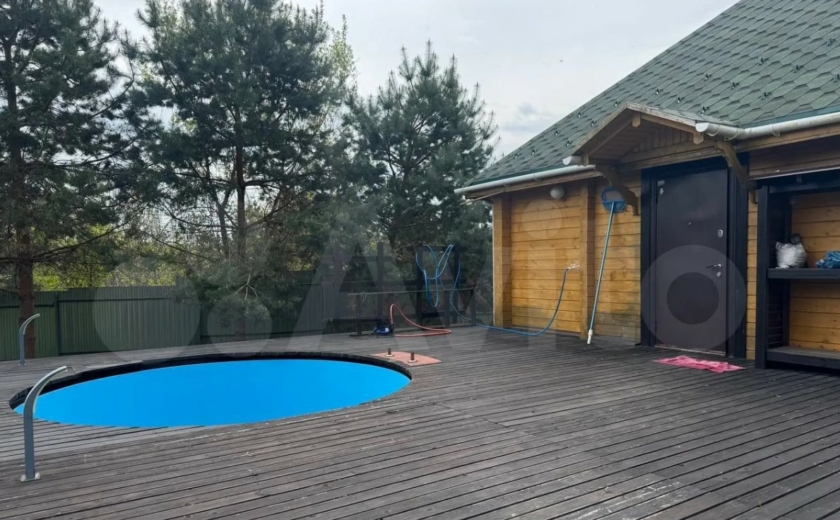 На участке стоит баня на дровах, открытый бассейн с зоной отдыха, двухэтаэный гараж, летняя кухня, крытая парковка.