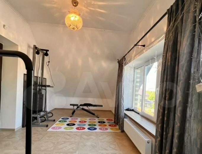 Дом расположен на Щекинском шоссе Тулы. Потенциальному покупателю он обойдется в 19 млн рублей. В доме два этажа. Внутри: спортзал, столовая, гостиная с камином и панорамными окнами, гардероб, ванные комнаты и четыре спальни.