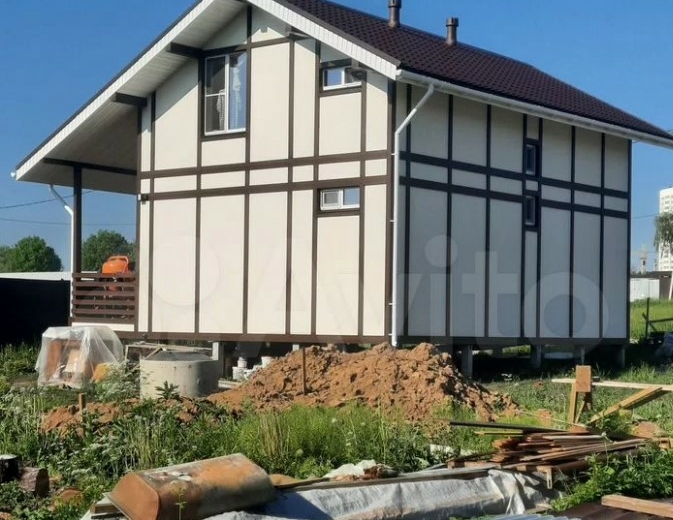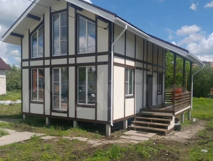 Коттедж расположен в тульской деревне Нижняя Китаевка на улице Зеленой. Дом обойдется в 7,8 млн рублей. Он выполнен в стиле Фахверк по индивидуальному проекту.