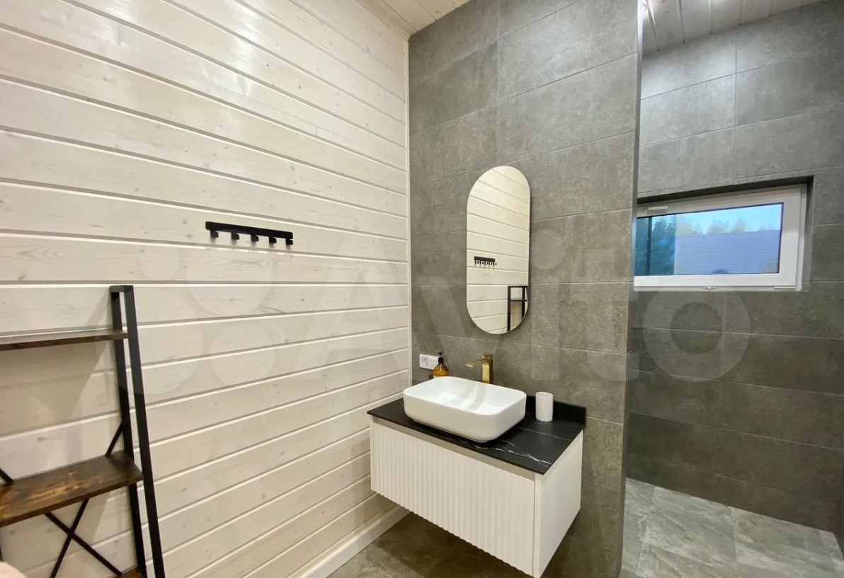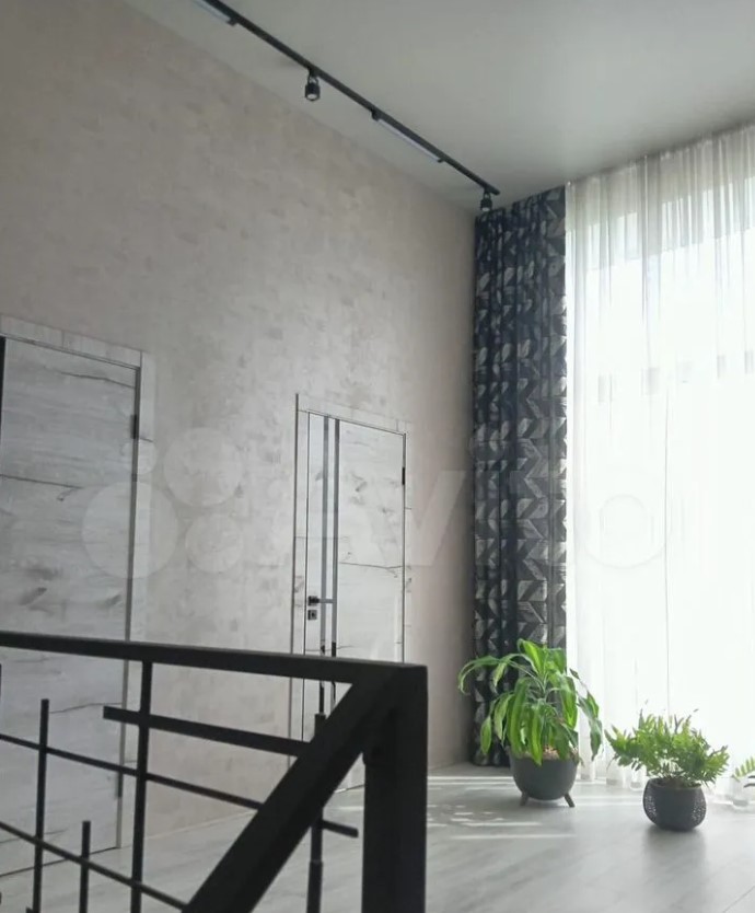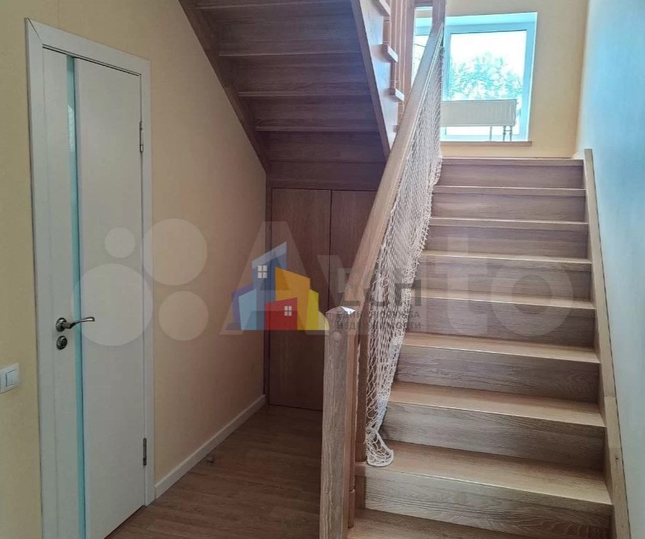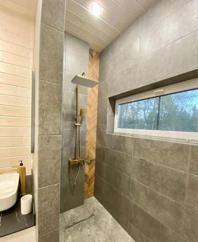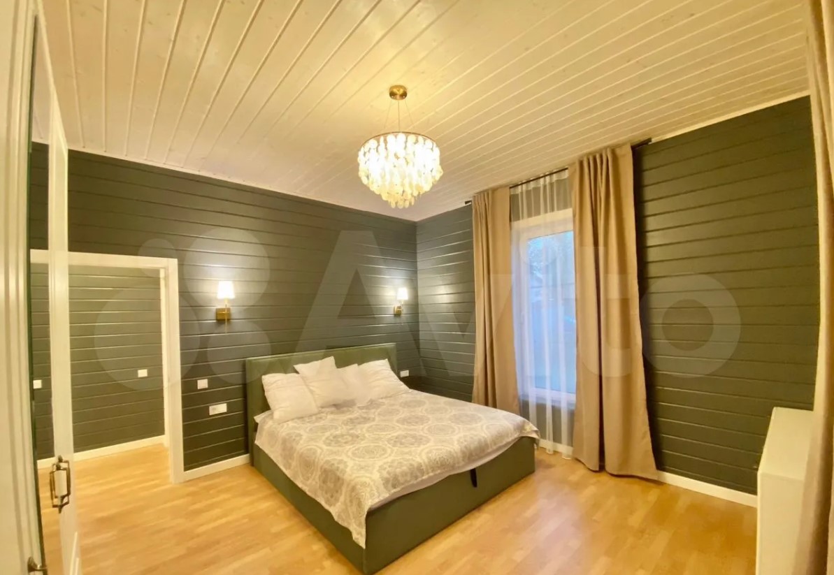 Дом расположен в Заокском районе и продается за 35 млн рублей. На первом этаже находятся кухня-гостиная с выходом на смотровую веранду, рабочий кабинет, санузле, спальня с панорамными окнами. Выше — еще четыре спальни.