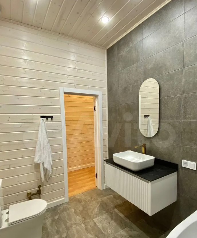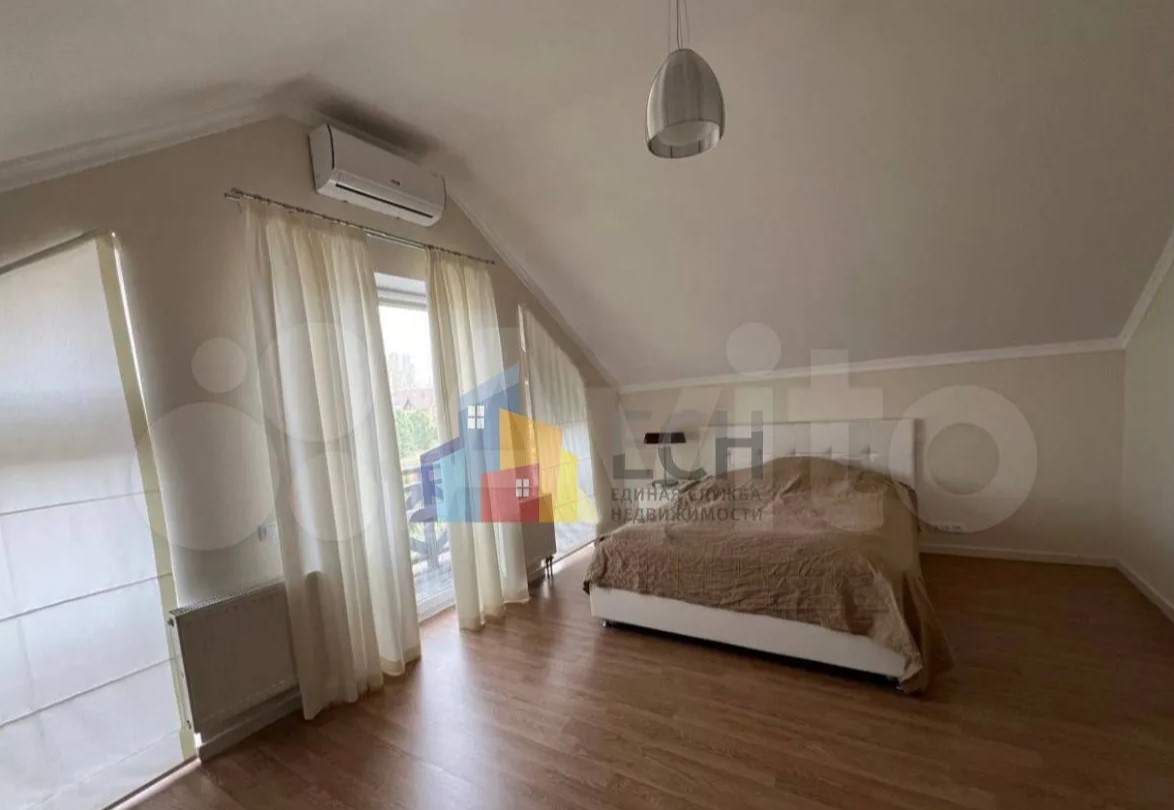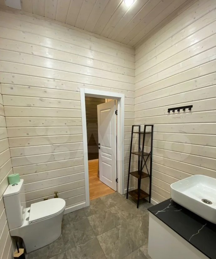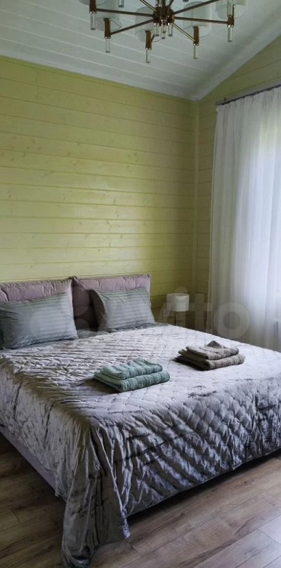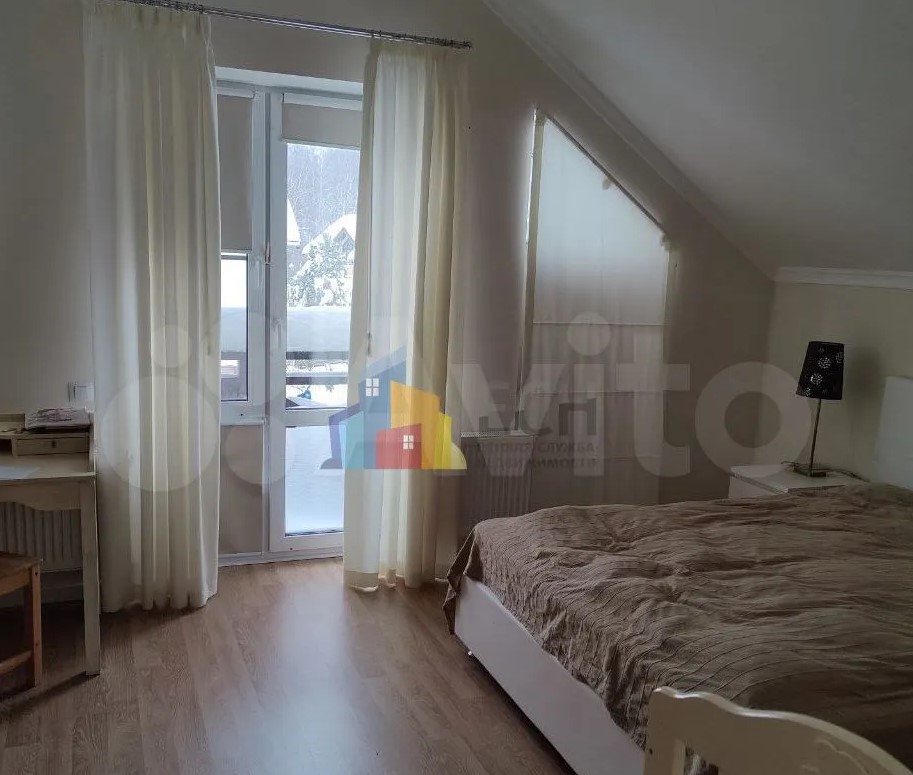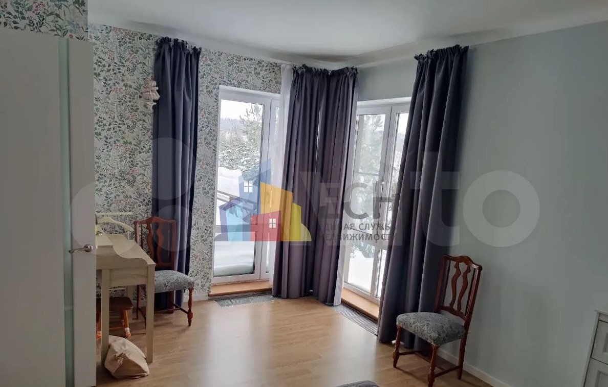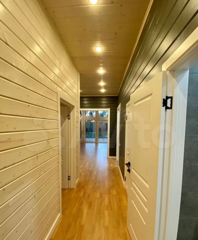 Дом расположен в Заокском районе и продается за 35 млн рублей. На первом этаже находятся кухня-гостиная с выходом на смотровую веранду, рабочий кабинет, санузле, спальня с панорамными окнами. Выше — еще четыре спальни.