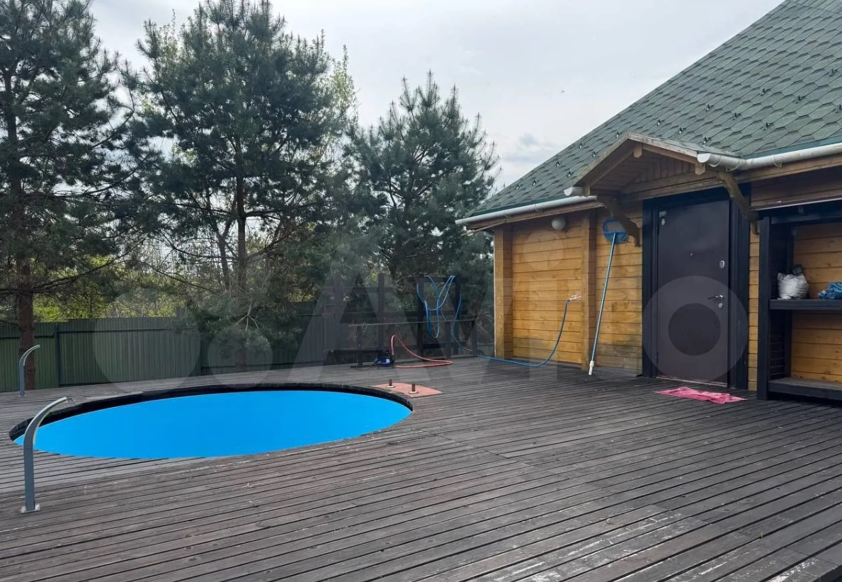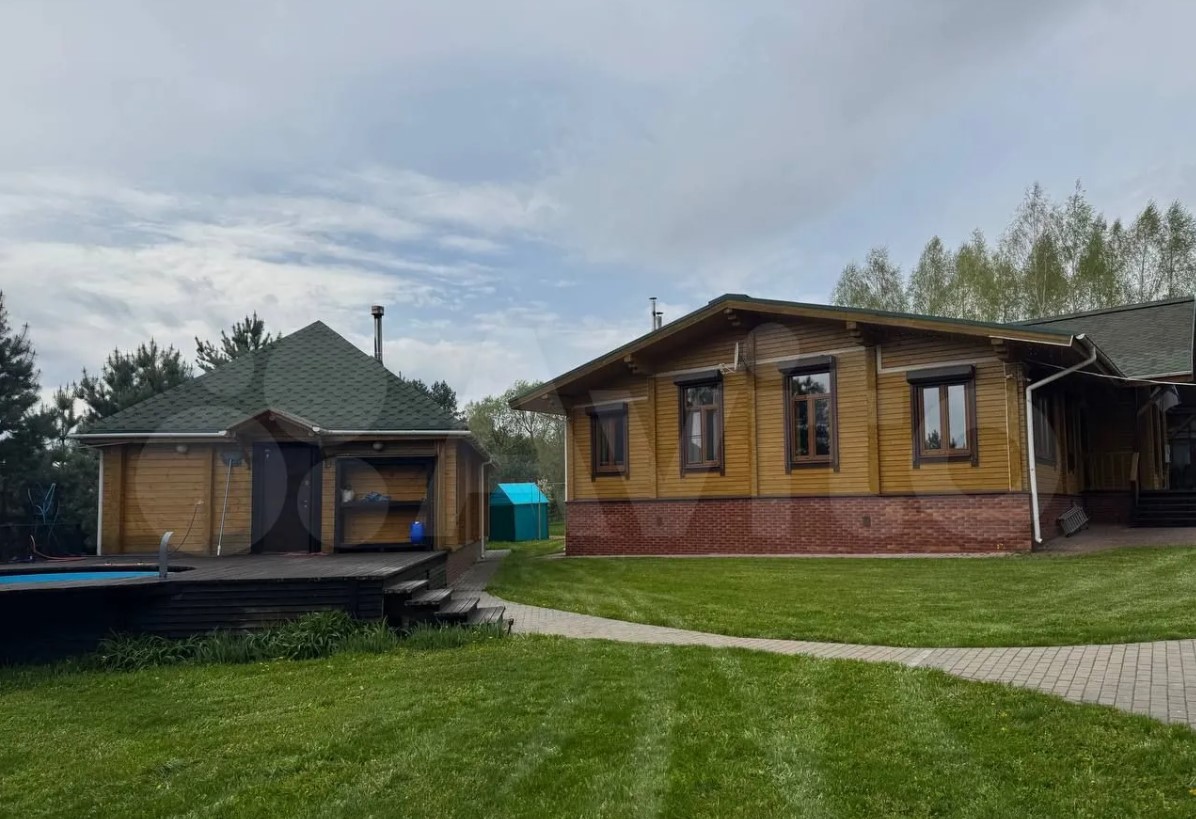 На участке стоит баня на дровах, открытый бассейн с зоной отдыха, двухэтаэный гараж, летняя кухня, крытая парковка.