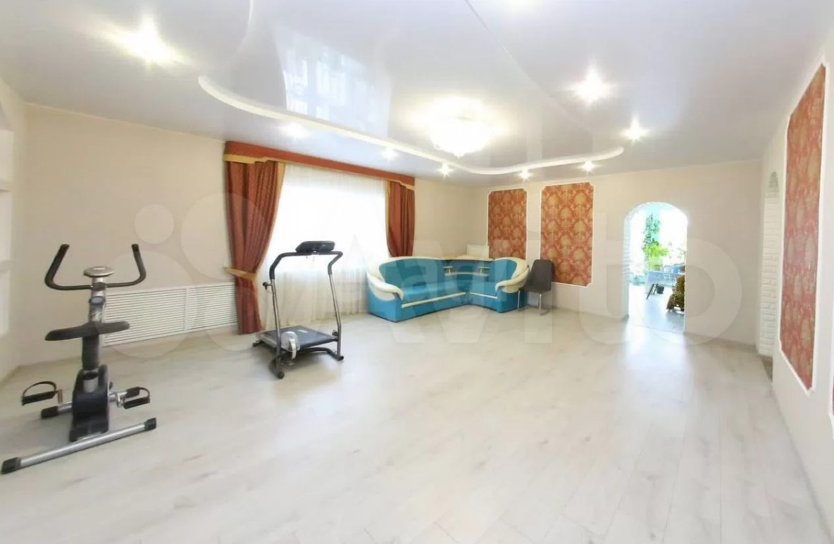 Дом расположен на Щекинском шоссе Тулы. Потенциальному покупателю он обойдется в 19 млн рублей. В доме два этажа. Внутри: спортзал, столовая, гостиная с камином и панорамными окнами, гардероб, ванные комнаты и четыре спальни.