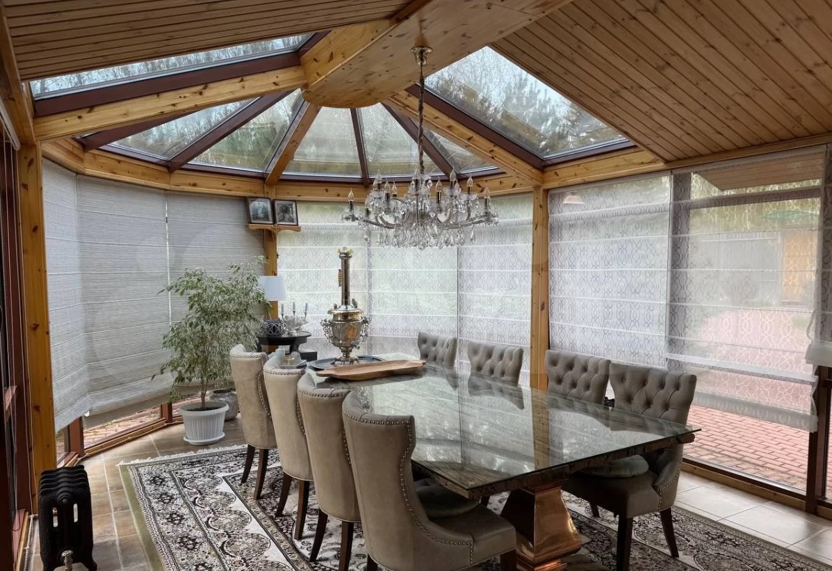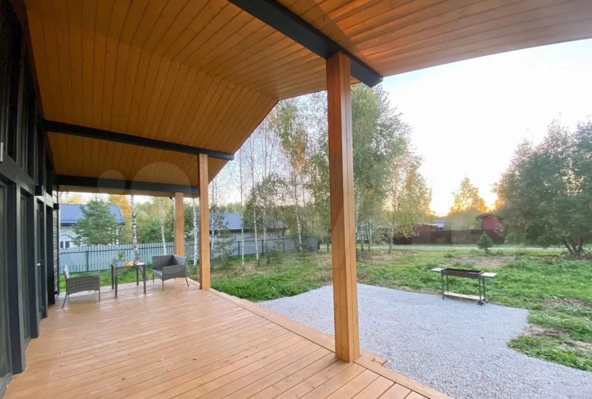Дом в Заокском районе продается за 18,6 млн рублей. В части комнат есть теплый пол, смонтированы панорамные окна. Также в доме есть камин. Оборудована большая веранда с красивым видом.