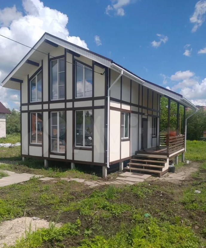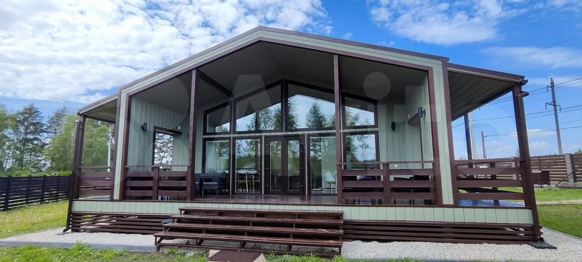 Дом расположен в тульском поселке Рудаково. Он продается за 16,9 млн рублей. Внутри пять комнат, кухня и зимний сад с панорамными окнами. На втором этаже есть балкон.