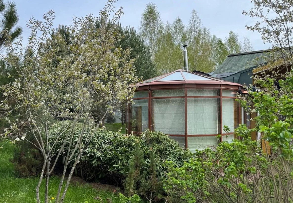 Есть также баня, джакузи и беседка на участке. Панорамные окна выходят на сад из плодовых деревьев. Кроме этого, установлен парник и оборудованы теплые грядки.