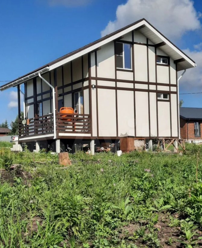 Коттедж расположен в тульской деревне Нижняя Китаевка на улице Зеленой. Дом обойдется в 7,8 млн рублей. Он выполнен в стиле Фахверк по индивидуальному проекту.