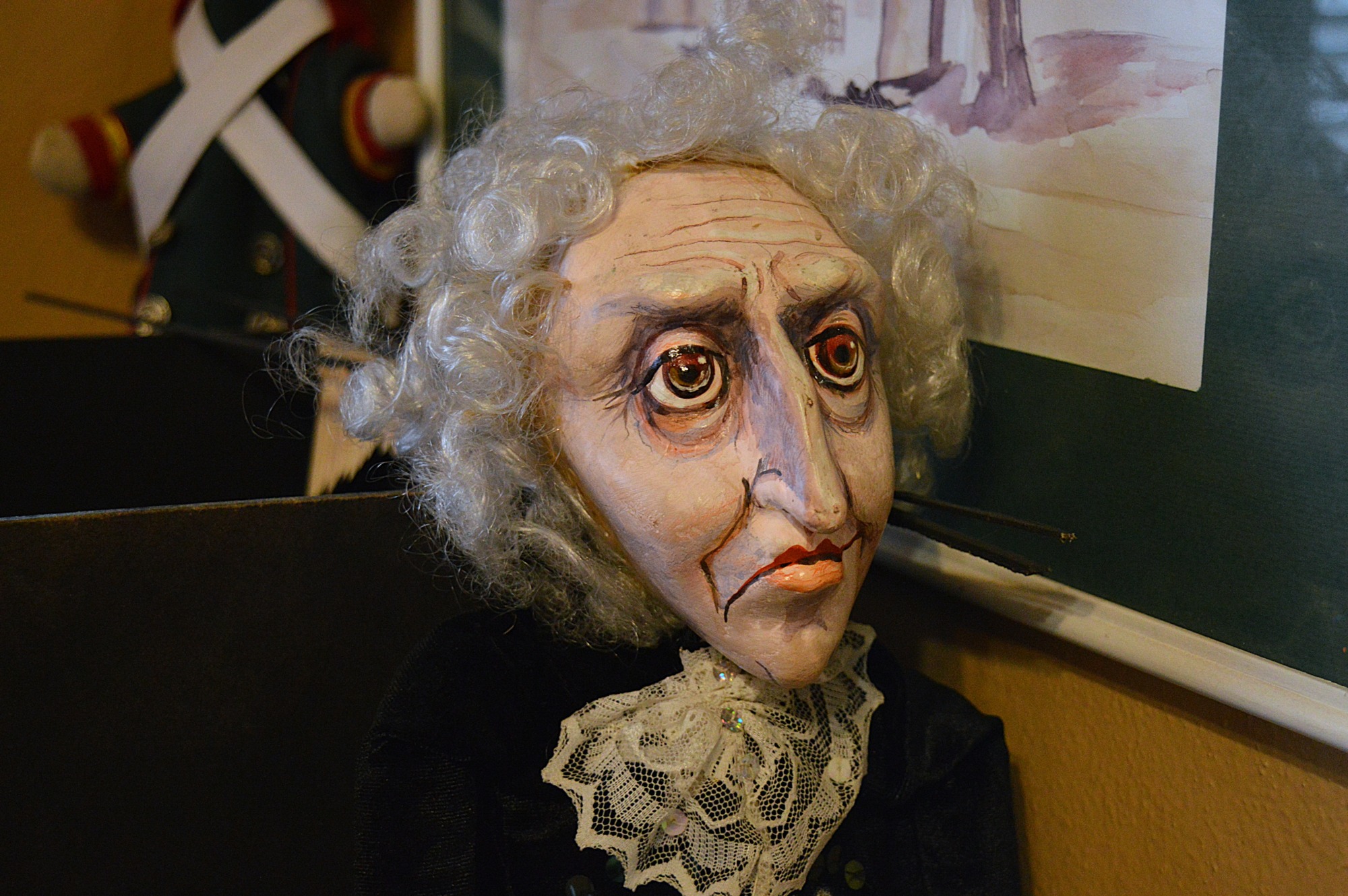 – Рыжего мне подарили в Махачкале, когда мы ставили «Сказки из шарманки» (0+). Тогда я в качестве приглашенного режиссера поставил спектакль «Персиковая косточка». А уже после мы использовали ее в нашем театре в «Сказках из шарманки». А это – Дроссельмейер. Его для нас смастерила Надежда Ванина. На заре своей истории наш театр поставил один-единственный кукольный спектакль «Щелкунчик» (6+).