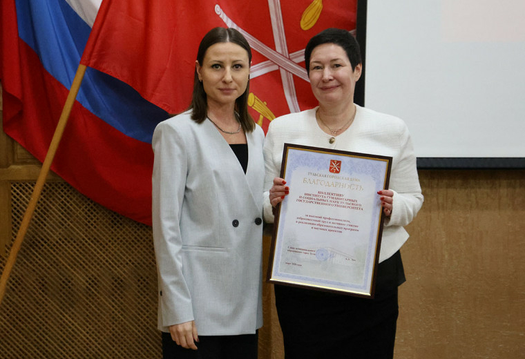 Депутат вручила коллективу института гуманитарных и социальных наук ТулГУ благодарность Тульской городской Думы.