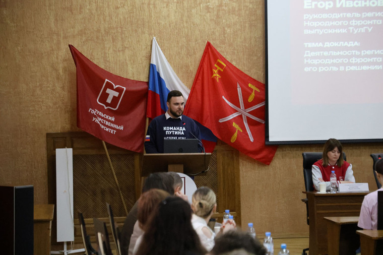 В ходе пленарного заседания студентам рассказали о работе региональных отделений фонда «Защитники Отечества», «Народного фронта», «Движения Первых», Общественной палаты Тульской области.