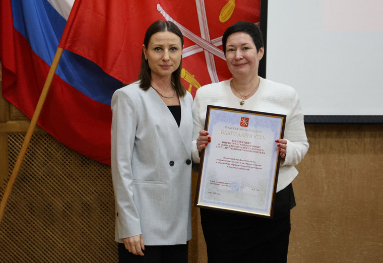Депутат вручила коллективу института гуманитарных и социальных наук ТулГУ благодарность Тульской городской Думы.