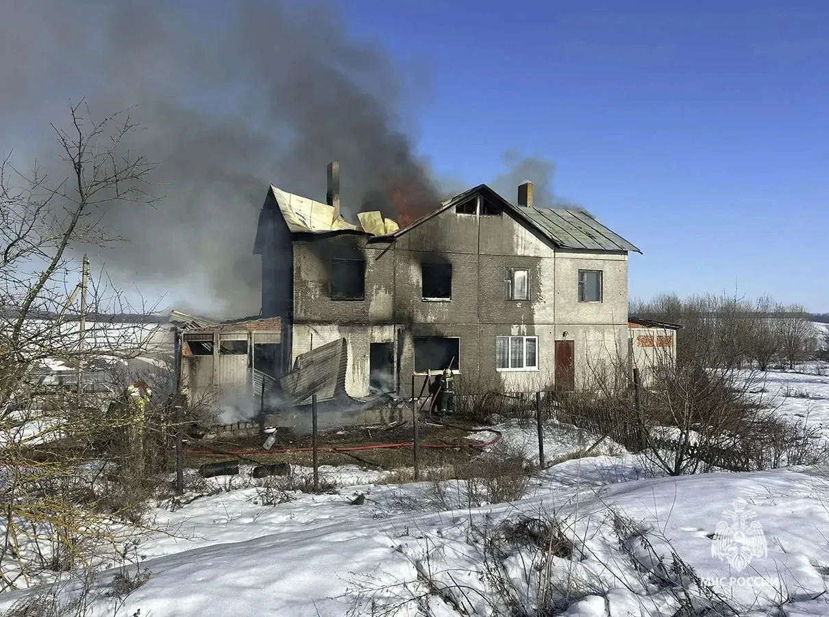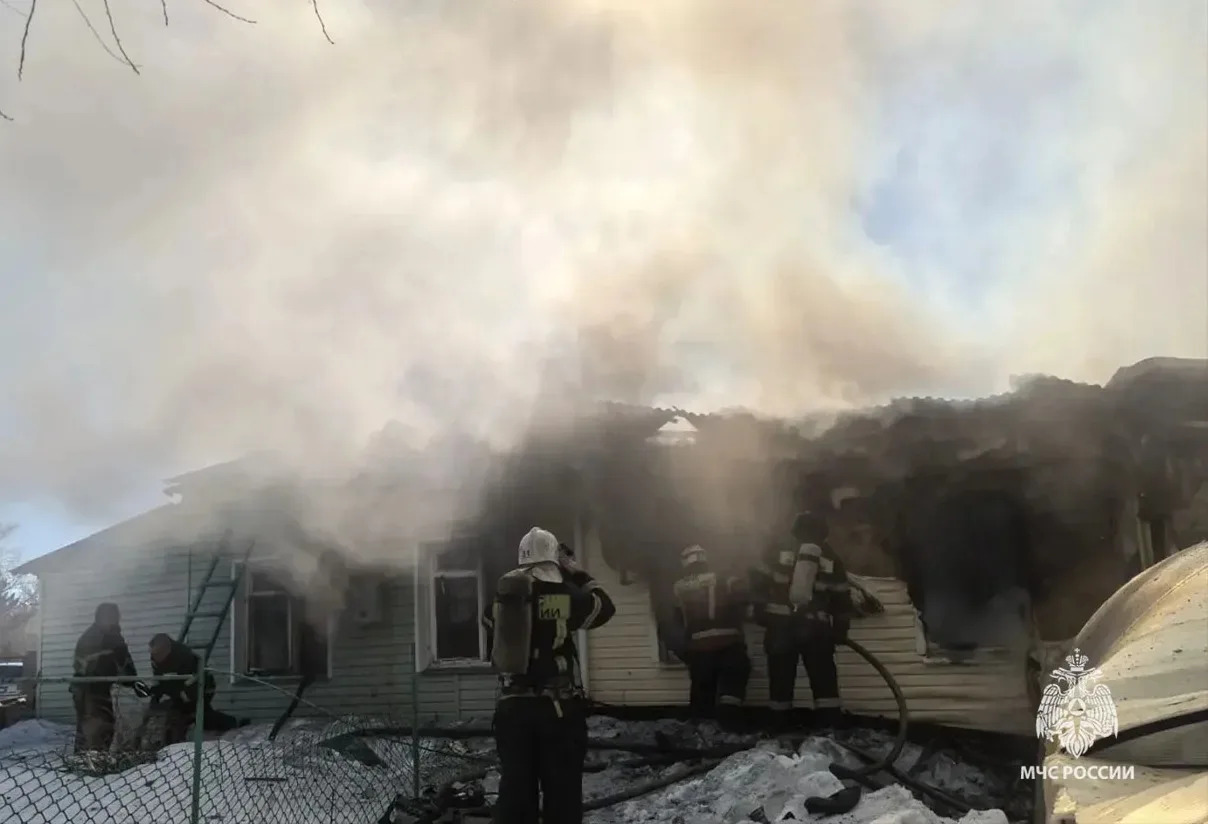 В тульской деревне Крутое в пожаре в доме на двоих хозяев погибла женщина. Также получил ожоги мужчина. На месте от МЧС работали 13 человек и четыре единицы техники.
