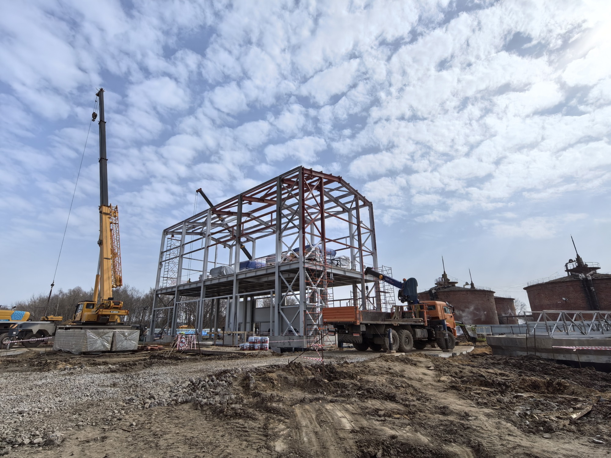 – Сейчас выполняются монтажные работы на здании самого главного сооружения – цеха механического обезвоживания осадка, – подчеркивает Валентин. – На данный момент готово около 80% металлоконструкций здания.