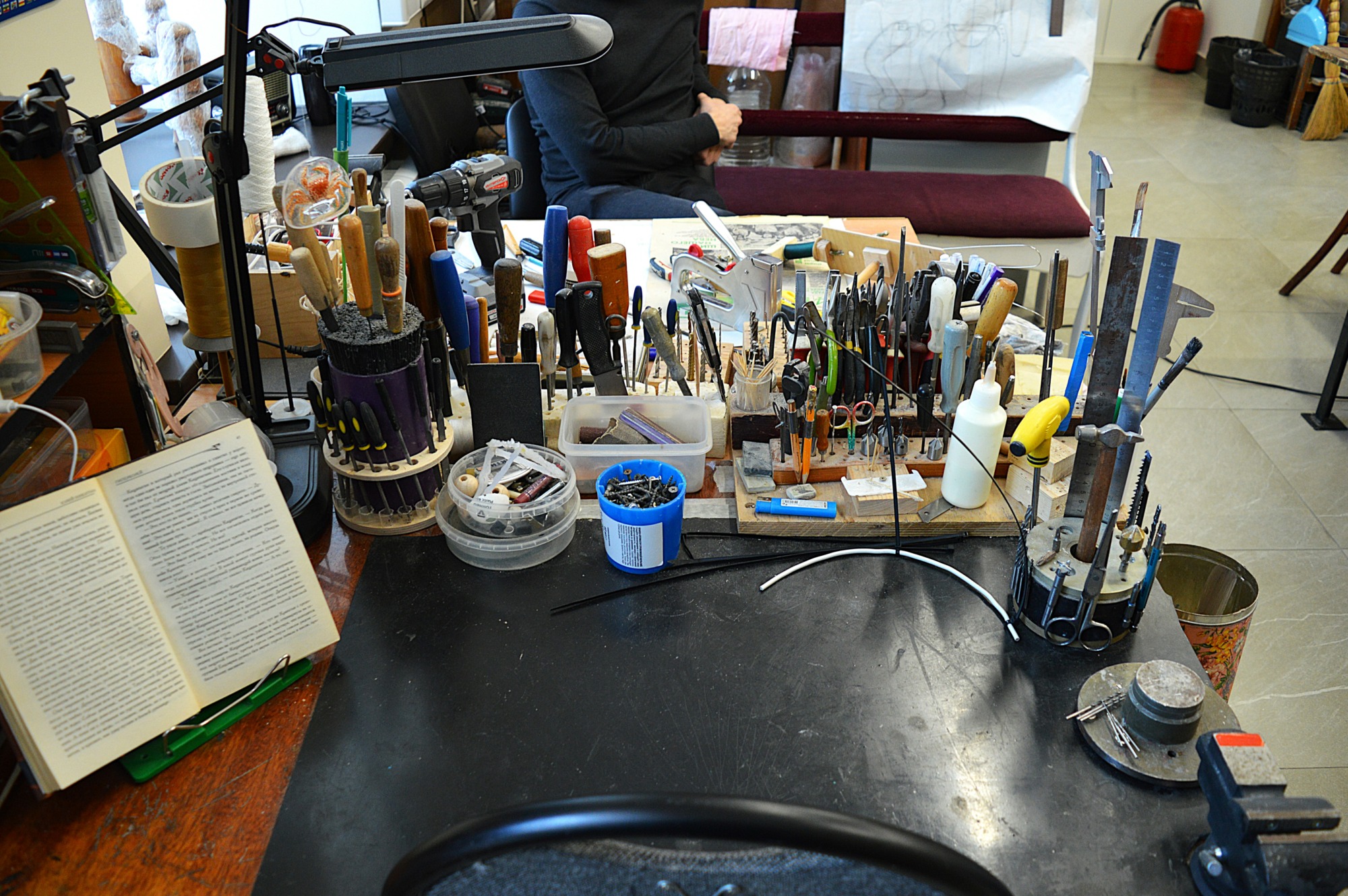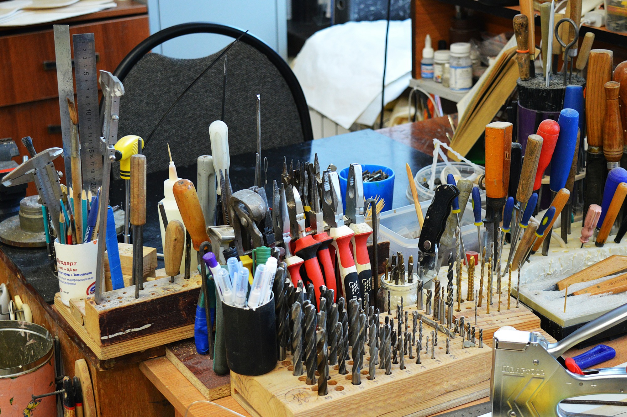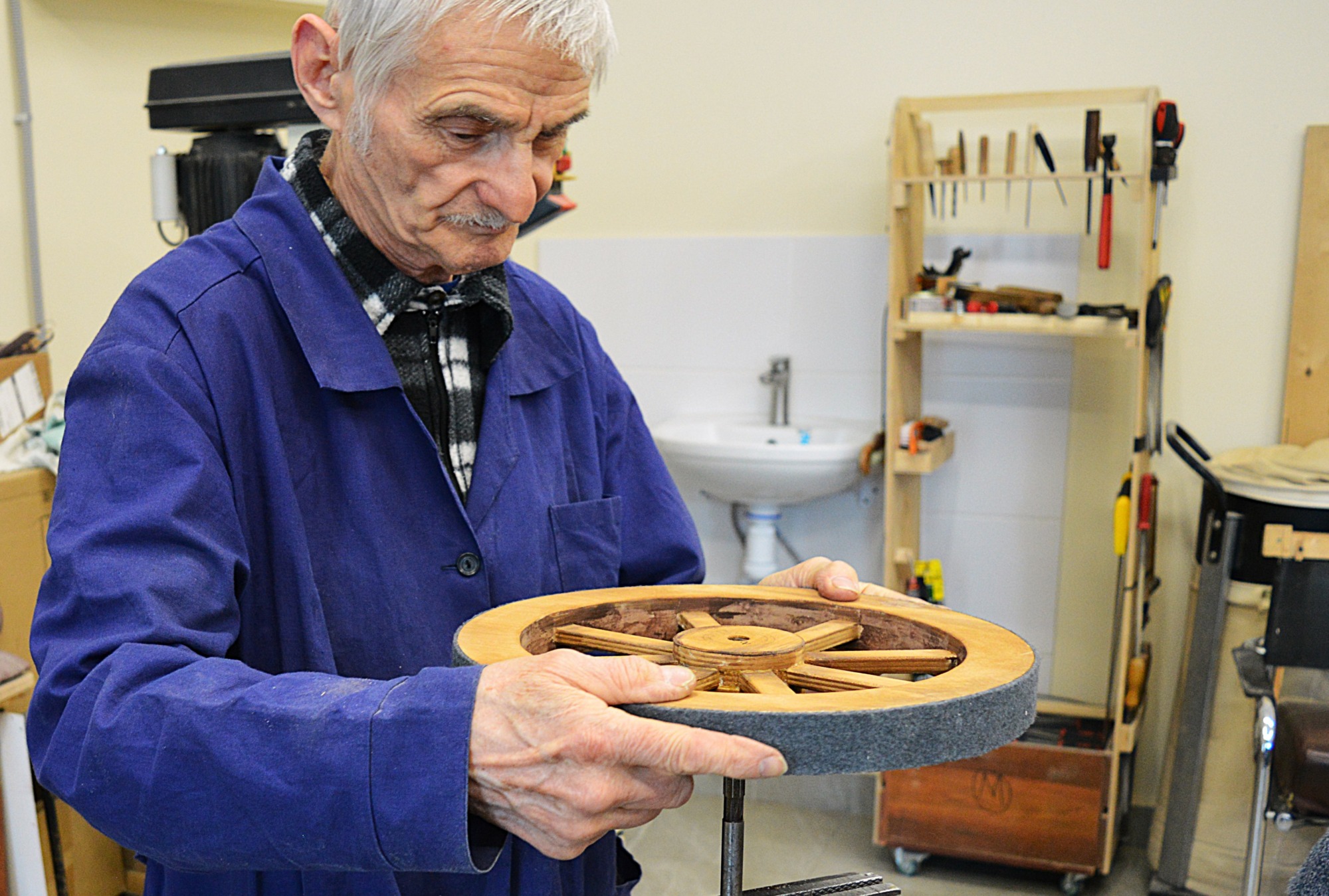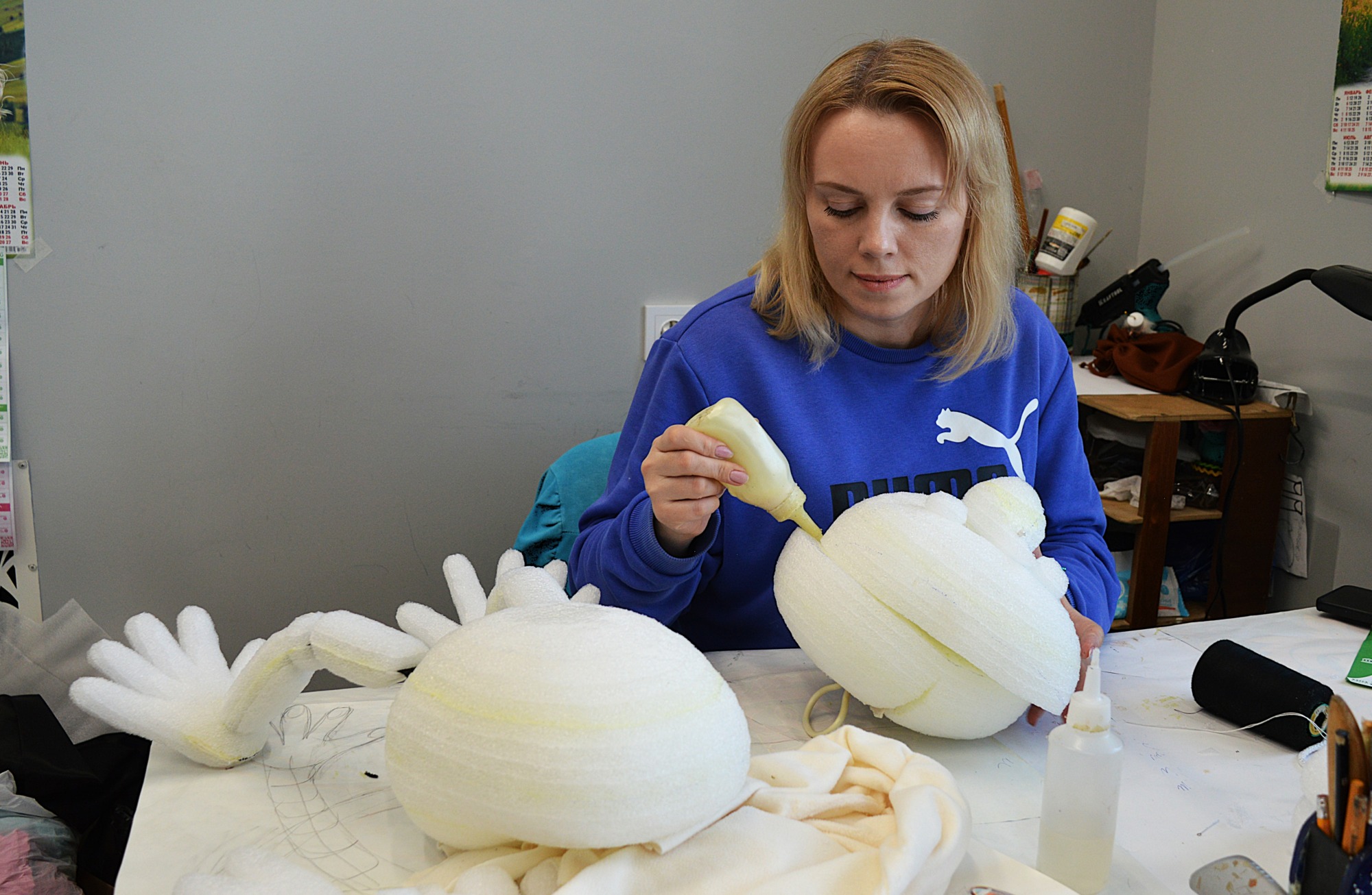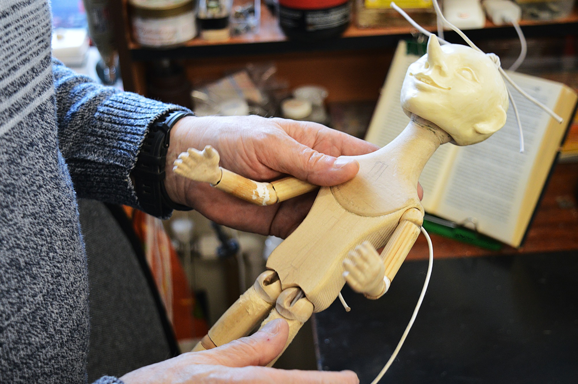 – В конструкторском цехе мы занимаемся изготовлением основ кукол, которых преображают в других цехах. Работы разные: ювелирные, плотницкие, столярные. Поэтому необходимо много разных инструментов и станков: сверлильные, пильные, токарные, точильные станки. В соседнем помещении расположена столярная мастерская – в ней в основном делают декорации.
