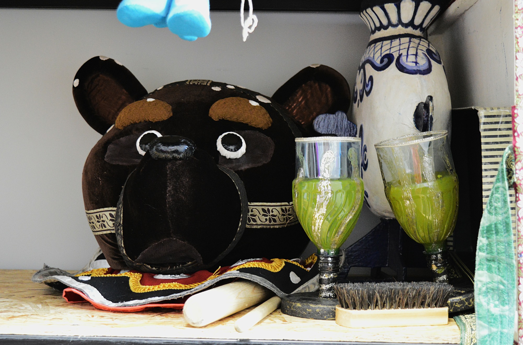 Внутри у них специальный механизм – гапит. С его помощью актер может заставить куклу поворачивать и наклонять голову, подмигивать и открывать рот. Иногда конструкция куклы может быть настолько сложной и детальной, что заставлять ее двигаться приходится сразу нескольким актерам.