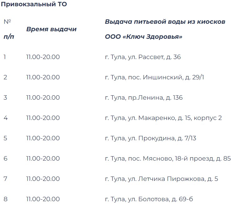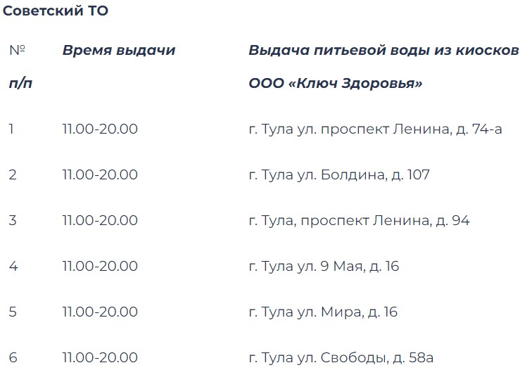 Адреса бесплатной раздачи воды в Туле