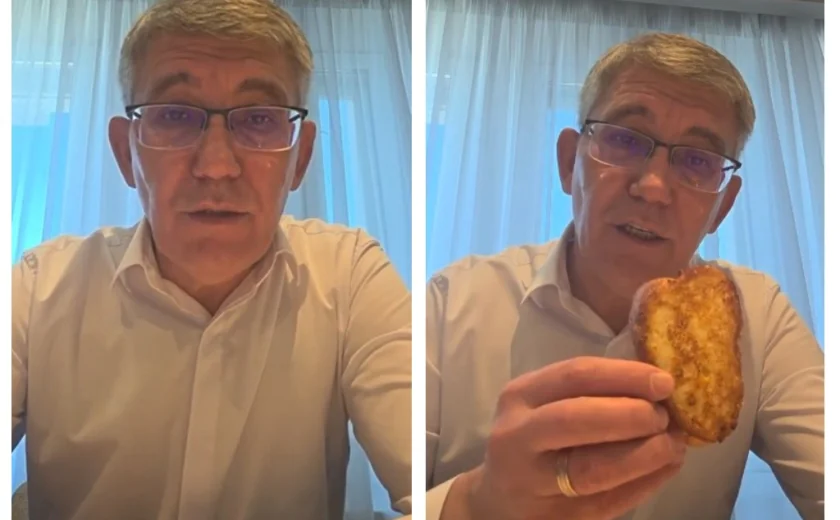 «Бесплатная идея для вас, а также наших кофеен и бистро. Попробуйте, я думаю, что не пожалеете. Кстати, вот она, гренка губернаторского детства», — сказал Миляев на видео и показал уже приготовленный ломтик.