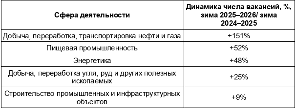 В целом по России сильнее всего вырос спрос на инженеров в сфере добычи, переработки и транспортировки нефти и газа — число вакансий увеличилось в 2,5 раза (+151%) по сравнению с зимой 2024–2025 годов.