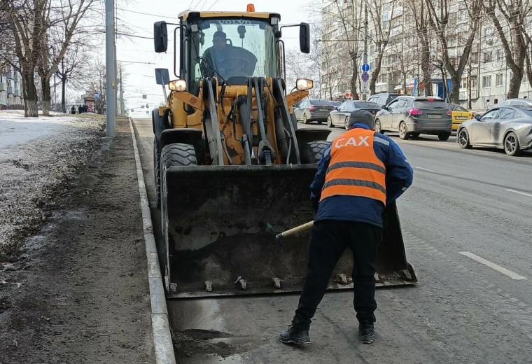 Коммунальщики продолжают очищать проезжие части, тротуары и парковочные карманы, а также собирают летучий мусор.