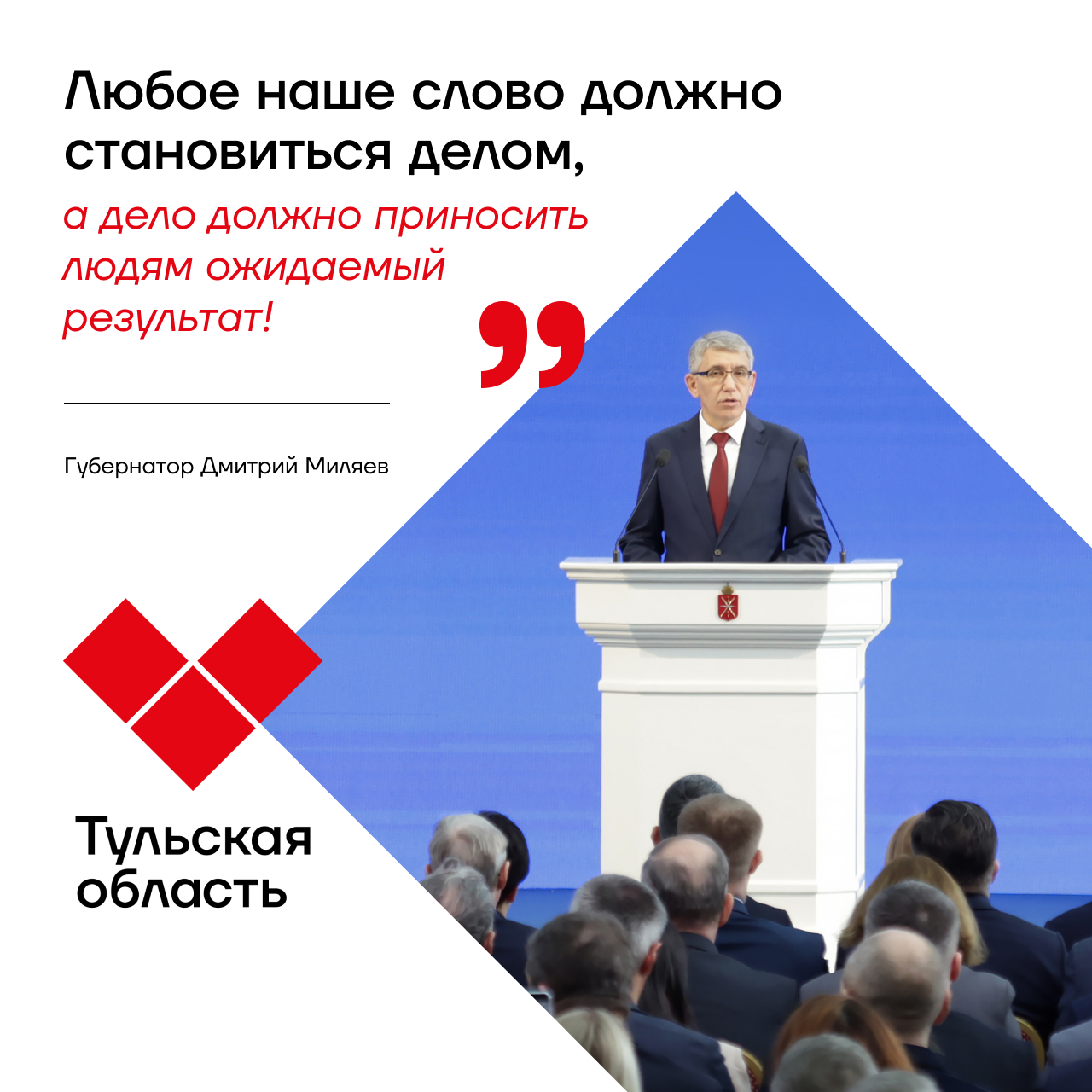 Во время послания Миляев, сделал акцент: туляки — это работодатели для чиновников. Поэтому любое слово должно становиться делом, а дело должно приносить ожидаемый результат. Полное видео и текстовую расшифровку послания губернатора можно посмотреть здесь. А ниже одни из самых ярких высказываний главы региона. Открыть карточки можно по клику.