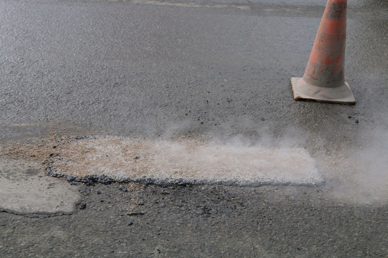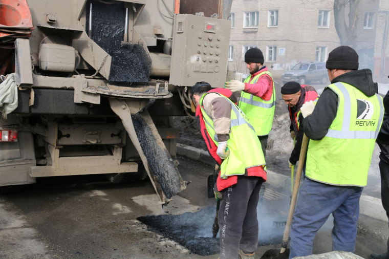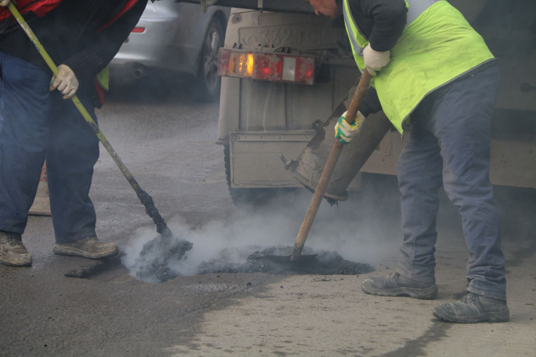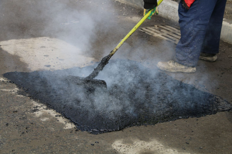Пока на улице чередуются плюсовые и минусовые температуры, используется технология литой асфальтобетонной смеси. Ее температура около 200 градусов. Перед укладкой асфальта проводятся все необходимые мероприятия для подготовки ремонтируемой поверхности: ее обеспыливают, убирают излишнюю влагу из ямы. Оставшаяся вода под действием высокой температуры смеси испаряется.