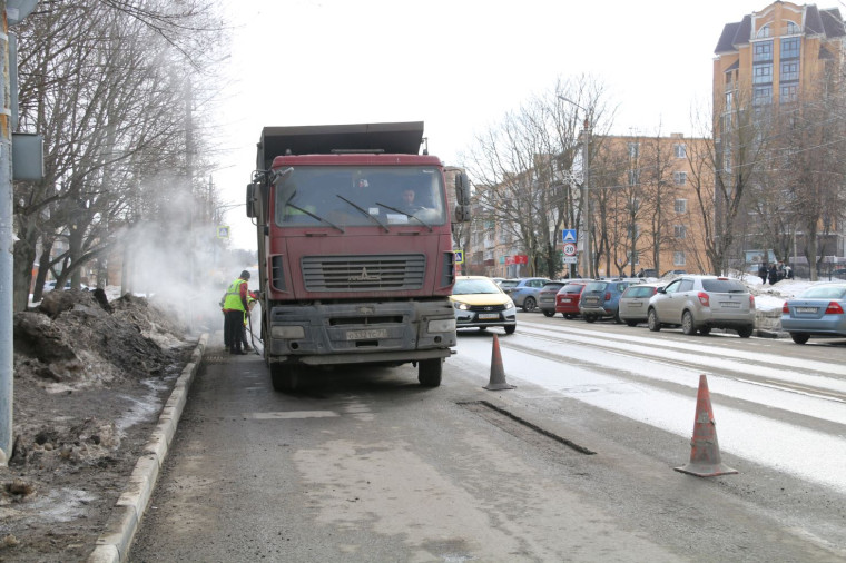 За первую половину марта ямочный ремонт провели на Алексинском, Одоевском, Калужском шоссе, на улице Мосина, в Новомедвенском проезде, на улицах Новомосковская, Ложевая, Восточный обвод, Ликбеза, Пржевальского, Скуратовская, Пролетарская и др.