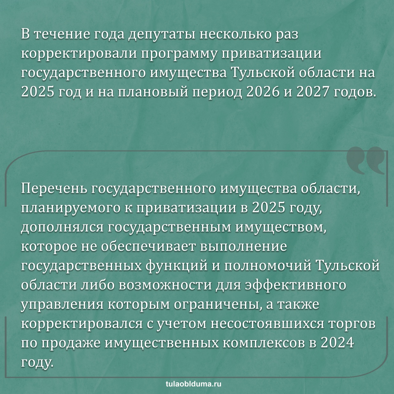 – В течение года депутаты несколько раз корректировали программу приватизации государственного имущества Тульской области на 2025 год и на плановый период 2026 и 2027 годов. Чем это вызвано?