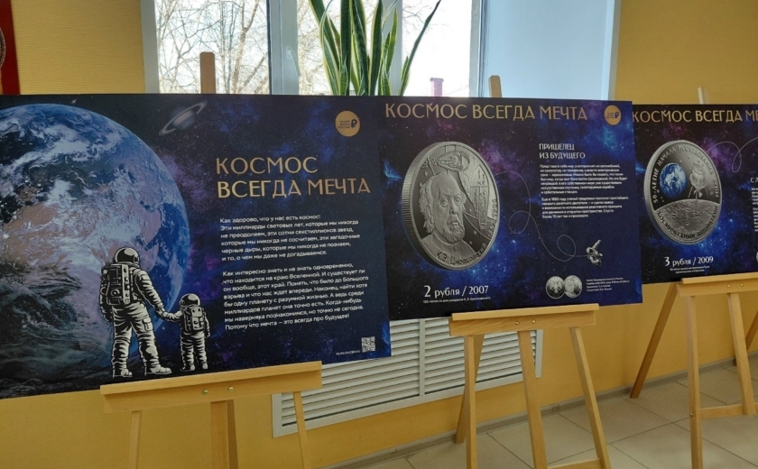 На выставке представлены 10 стендов с изображениями памятных монет. Экспозиция знакомит с монетами, посвященными ключевым событиям и символам отечественной космонавтики: от первых шагов за пределами Земли до легендарных летательных аппаратов и портретов тех, кто стоял у истоков космической программы.