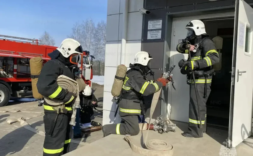Первое пожарное подразделение прибыло на место условного пожара через несколько минут. Расчеты в составе звена газодымозащитной службы провели разведку в задымленных помещениях и обнаружили одного из работников, который не смог вовремя покинуть здание. Спасатели оперативно эвакуировали «пострадавшего» с помощью специальных устройств.