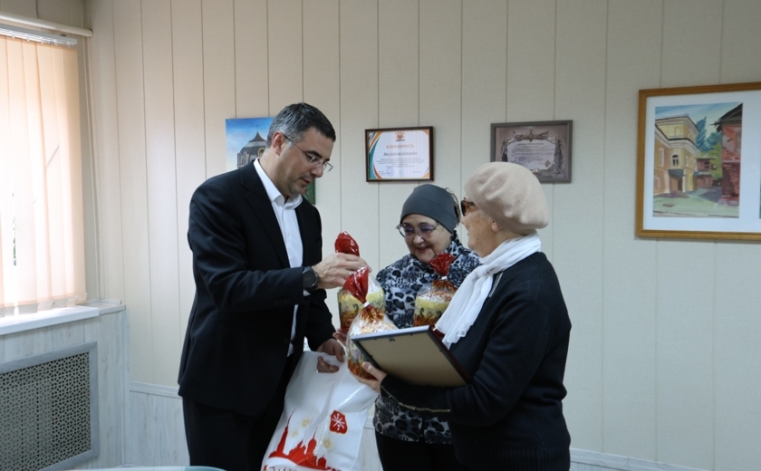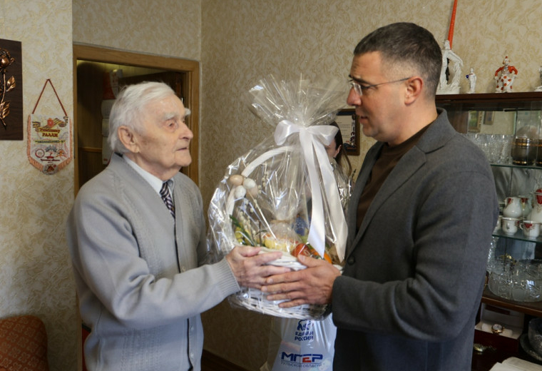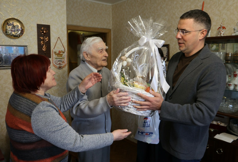 Они передали ветерану пасху, кулич и памятные подарки, поздравили с праздником и пожелали здоровья и благополучия.