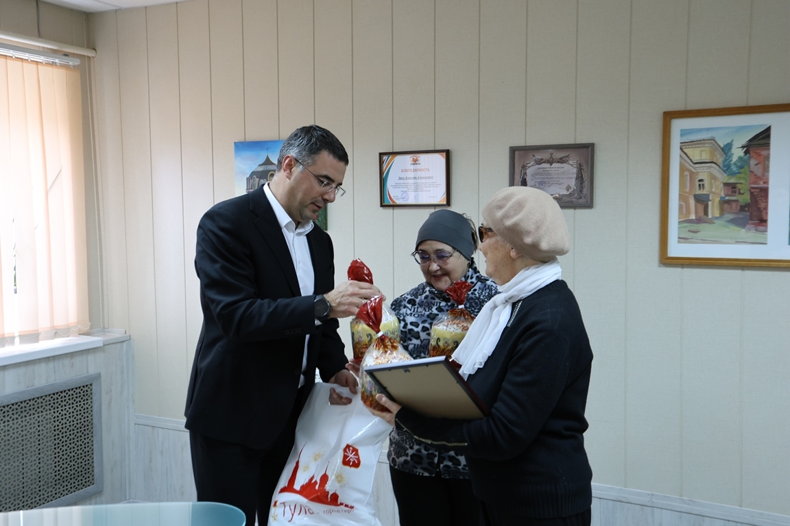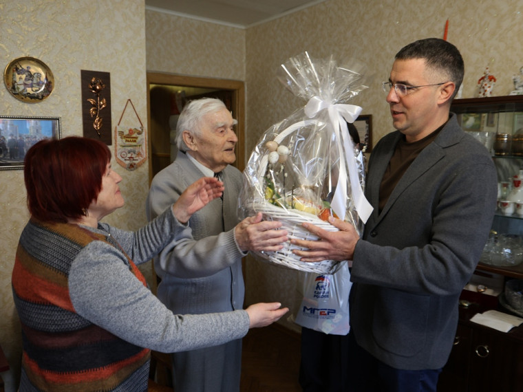 Они передали ветерану пасху, кулич и памятные подарки, поздравили с праздником и пожелали здоровья и благополучия.