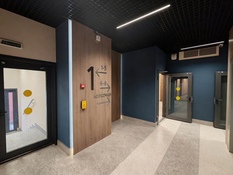 Для удобства передвижения подъезды выполнены сквозными, что позволяет сразу выйти как во двор, так и на парковку. В каждом доме установлены по два тихих скоростных лифта, а на каждом этаже предусмотрена удобная навигация, делающая перемещение по дому легким и комфортным.