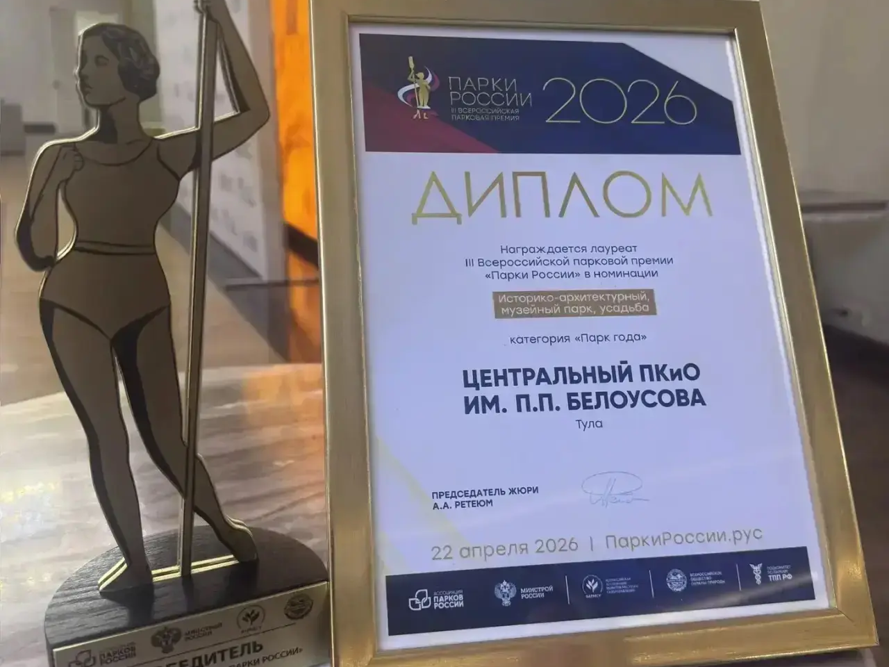 Главную награду парк получил в номинации «Парк года». Глава региона поздравил с победой коллектив учреждения «Тульские парки», отметив, что это достойное признание их работы.